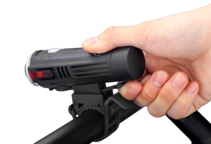Dizajn držiaka s gumovým úchytom umožňuje rýchlu montáž aj demontáž svetla na riadidlá, bez použitia náradia. Svietidlo je preto možné použiť aj ako vysoko výkonné ručné svetlo, čo oceníte napríklad pri viacdenných cyklo výletoch spojených s kempovaním či táborením, Držiek je možné použiť na všetky riadidlá s priemerom od 20 až 35 milimetrov.