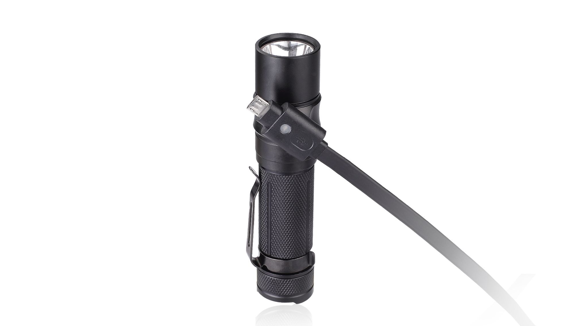 Vreckové svietidlo Fenix RC11 je vybavené Li-ion akumulátorom s kapacitou 2600 mAh, ktoré je možné nabíjať priamo v svietidle pomocou USB kábla s magnetickým uchytením. Nabíjací kábel, ktorý je súčasťou balenia, zapojíte do USB konektora počítača, USB adaptéra do siťe alebo do auta. Magnetický konektor na druhom konci kábla jednoducho priložíte k nabíjacej plôške na svietidle, ku ktorej sa sám pevne prichytí. Tento jedinečný, vysoko komfortný spôsob napájania cez ergonomický magnet, uľahčuje manipuláciu so svietidlom a navyše sa vďaka tomu predchádza potenciálnym problémom so zanesením štandardného micro-USB porte v extrémne prašnom prostredí (púšť, piesočnaté pláže a pod.). Na plné nabitie akumulátora sú potrebné len štyri hodiny. Alternatívne môžete na napájanie použiť aj dvojicu jednorazových CR123A batérií, známych ako „foťákové“ batérie.