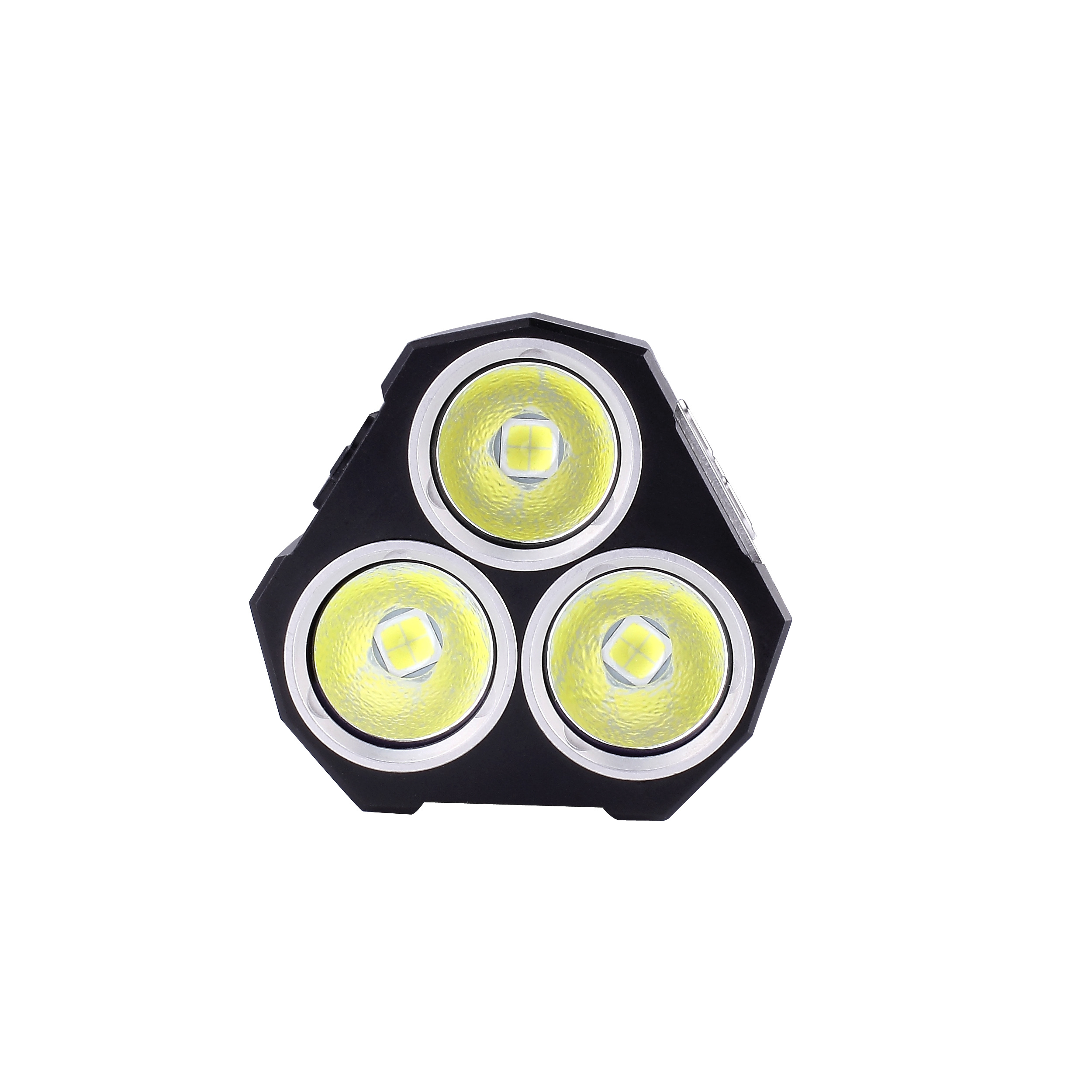 Tlačidlovým ovládaním môžeme postupne zvýšiť výkon prúdiaci z troch reflektorov v krokoch po 100 lúmenoch, až sa svietidlo naplno rozžiari ako „trojoký boh Šiva“ svetelným tokom 9000 lúmenov. Možno tiež použiť stroboskopický režim, vhodný napr. na signalizáciu v núdzových situáciách. Diódy Cree XHP70 majú úctyhodnú životnosť až 50 000 hodín svietenia. Pri maximálnom výkone vydrží svietidlo bez nabitia cca 50 minút, na minimálny výkon môže svietiť 50 hodín. Pri každej baterke je nemilé, keď ju chceme použiť a odniekiaľ ju vytiahneme svietiacu a takmer vybitú. No aj na to je tu pamätané – ovládacie tlačidlá totiž možno na čas prepravy alebo uloženia uzamknúť.