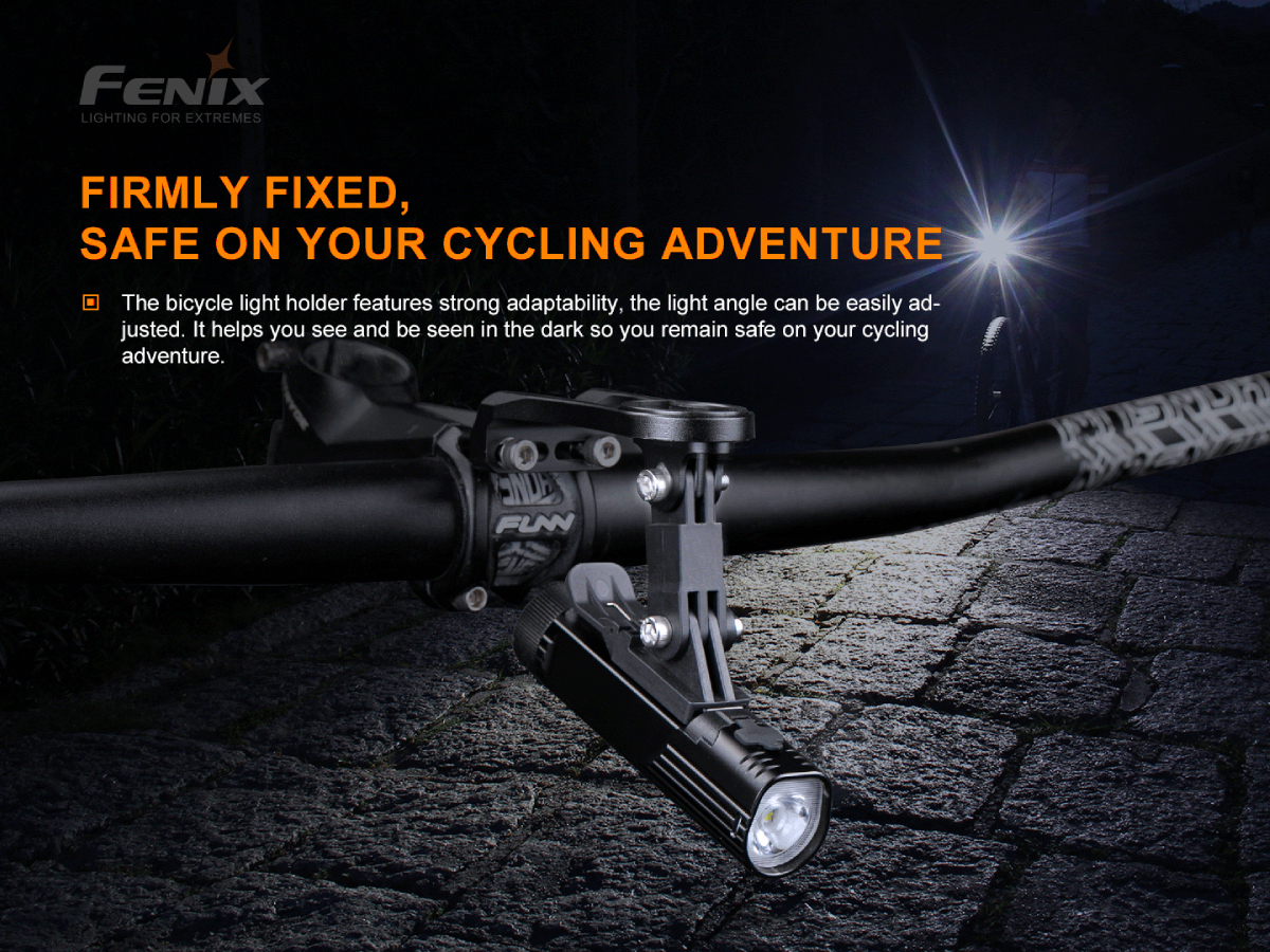 Držiak je kompatibilný s cyklosvetlami Fenix BC25R, BC30 V2.0, BC30R, BC30, BC35R, BC20 a BC21R V2.0.