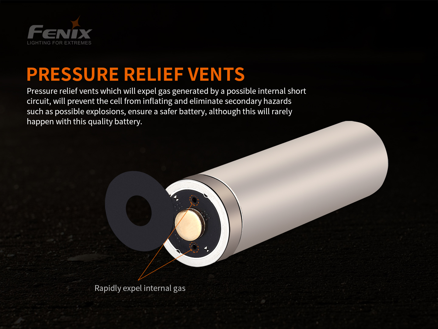 Interná ochrana pozostáva zo separátora, najmodernejšej ochrany proti prehriatiu (PTC – Positive Temperature Coefficient) a špeciálneho protivýbuchového ventilu. V prípade, že tlak plynu v článku prekročí určitú hranicu, oddelí interný separátor elektródy vnútri batérie a tým de-facto preruší exotermickú reakciu a protivýbuchový ventil vypustí pretlak plynu mimo akumulátor. Vďaka kombinácii elektronickej a mechanickej (teplotnej a tlakovej) ochrany patria Fenix batérie k tým najbezpečnejším dostupným Li-ion akumulátorom.