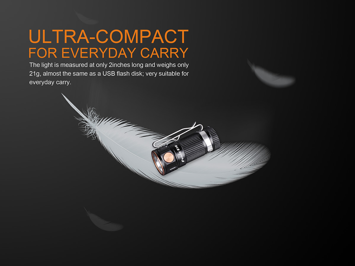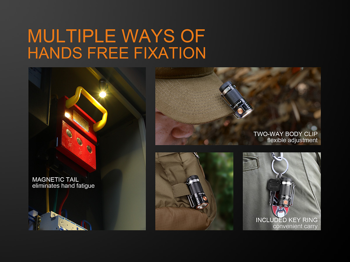 Samozrejmosťou je vysoká kvalita prevedenia, odolnosť a vodotesnosť. Svietidlo je vybavené snímateľnou obojsmernou sponou a koncovka je doplnená o magnet. Unikátnou inováciou je špeciálny kolimátor, ktorý vytvára svetelný kužeľ s prekvapivým dosvitom 142 metrov. Kolimátor je vyrobený technológiou využívanou v autopriemysle a jeho výška sú len 3 milimetre, to je menej ako polovica oproti bežne používaným optikám. Svietidlo je svojimi vlastnosťami predurčené, aby slúžilo ako ideálny malý spoľahlivý spoločník, ktorý je vždy poruke. S týmto užitočným darčekom urobíte vždy radosť.