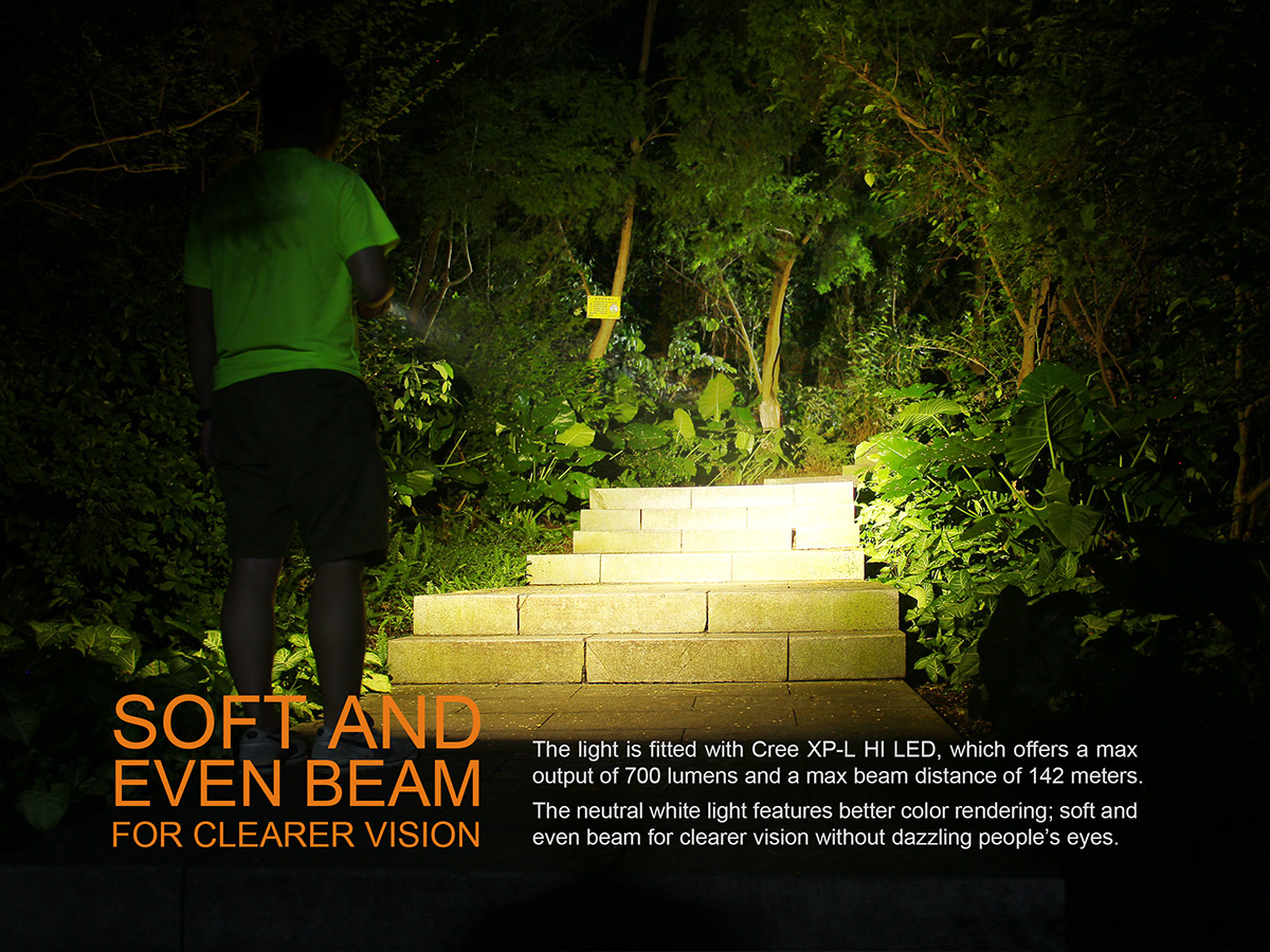 - Výkonná LED Cree XP-L HI s teplejším odtieňom svetla