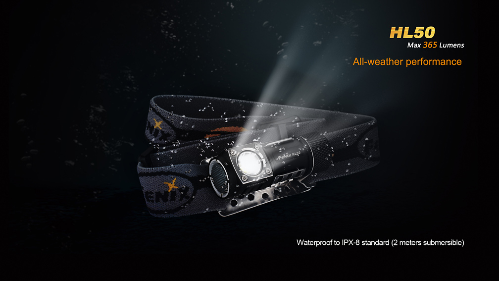 Celokovová konštrukcia zaisťuje vysokú odolnosť, optimálne chladenie a zároveň je plne vodotesná podľa štandardu IPX-8 až do hĺbky 2 metre pod vodou. Z čelovky možno vybrať svetlo z hlavového držiaku a používať ho i ako malé vreckové svetlo. Čelovka Fenix HL50 je ideálnym spoločníkom pre rôznorodé športové i domáce aktivity.