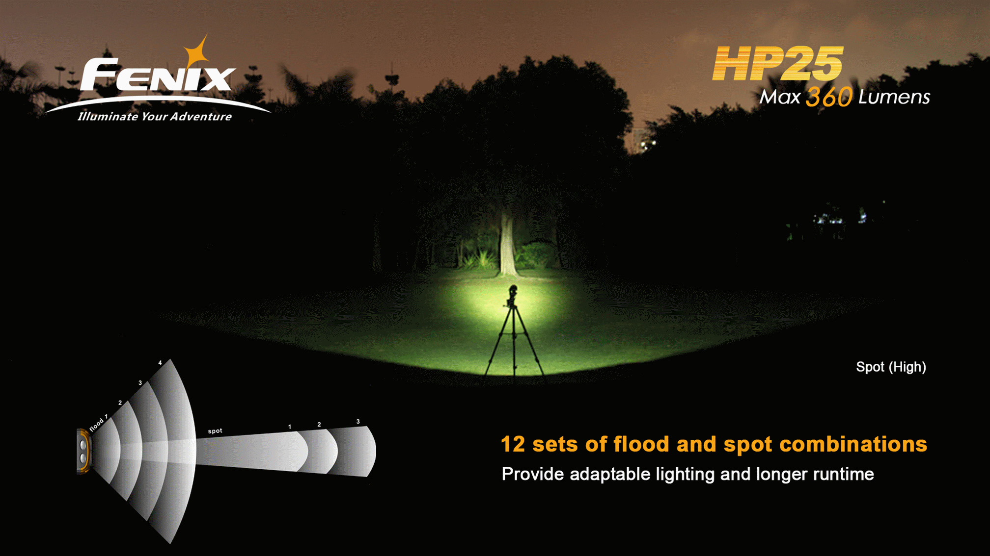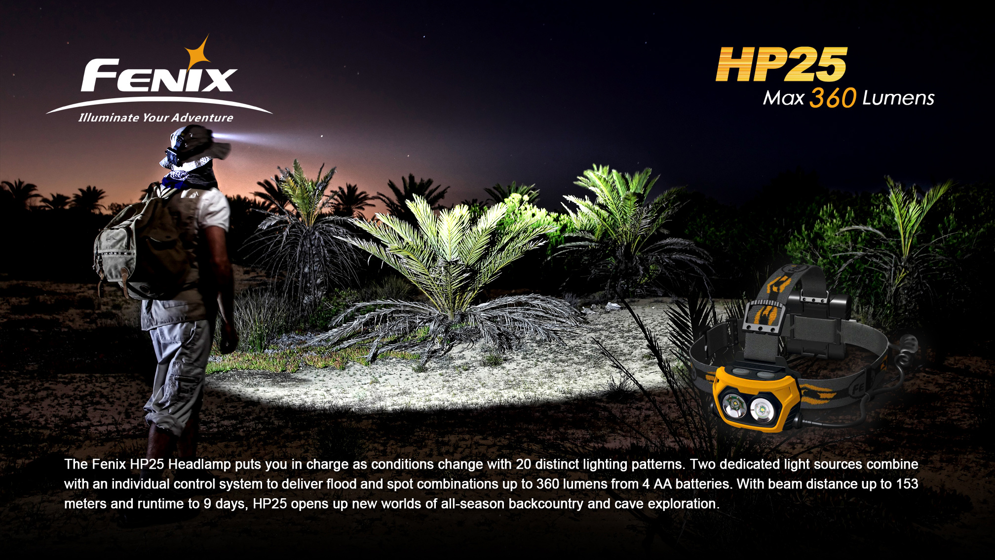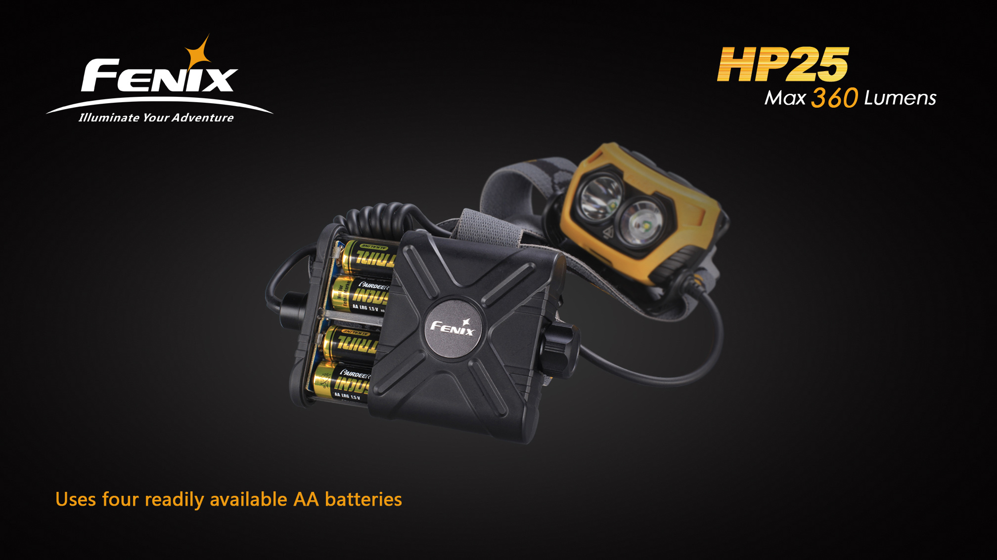 Absolútna bomba medzi čelovými svietidlami! LED čelovka Fenix HP25 prináša bezkonkurenčný výkon 360 lúmenov (ANSI) a dosvit až 153 metrov. Je pritom napájaná iba štyrmi bežnými tužkovými batériami. HP25 sa vyznačuje unikátnou konštrukciou s dvoma reflektormi – jeden reflektor vytvára dobre zaostrený svetelný lúč s dosvitom až 153 metrov a druhý reflektor má veľmi širokú a plynulú svetelnú stopu. Svetelný výkon každej LED je až 180 lúmenov, takže pri zapnutí obidvoch reflektorov na maximum dosahuje svetelný tok hodnoty 360 lúmenov. Ovládanie oboch LED je na sebe nezávislé, takže je možné oba kužele ľubovolne kombinovať podľa aktuálnych potrieb. Výborná vodeodolnosť (IPX-6) a digitálna konštantná regulácia výkonu sú u čeloviek Fenix samozrejmosťou. Čelovka je vhodná pre speleológiu, pohyb v náročnom teréne, beh, bežecké lyžovanie, cyklistiku, rybárstvo, do podzemia a dalšie športové a outdoorové aktivity. Recenziu čelovky si môžete prečítať na hikers.sk.