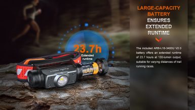 Fenix HM62-T je vysoko výkonná bežecká čelovka, ktorá ponúka svetelný tok až 1200 lúmenov neutrálneho bieleho svetla s dosvitom 150 metrov. Výhodou tohto odtieňa svetla je prirodzenejšie a kontrastnejšie podanie farieb v teréne. Čelovka disponuje navyše aj červeným svetlom s výkonom 5 lúmenov. Súčasťou balenia je aj dobíjateľný Li-ion akumulátor typu 18650 s kapacitou 3400 mAh, ktorý sa nabíja cez USB-C konektor na jeho tele. Čelovka je vhodná najmä na nočný beh, bežecké lyžovanie či skialpy, turistiku, rybárčenie alebo speleológiu. Celokovová konštrukcia z ľahkej magnéziovej zliatiny zaisťuje vysokú odolnosť, optimálne chladenie a zároveň je plne vodotesná podľa štandardu IP68 až do hĺbky 2 metre pod vodou a to všetko pri zachovaní nízkej hmotnosti.