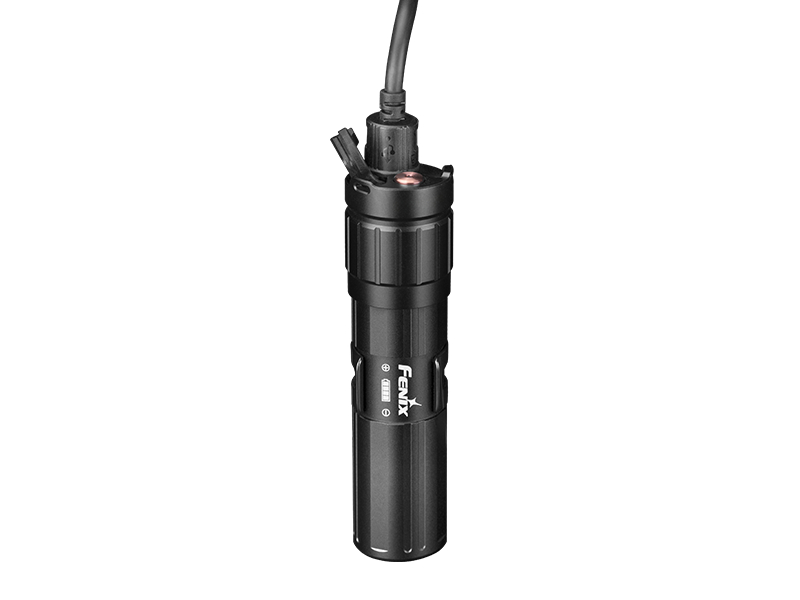 Uzamknutie dodávaného USB-C kábla v konektoroch – Súčasťou balenia je USB-C kábel na prepojenie čelovky a batériového puzdra. Kábel je vybavený na oboch koncoch zámkami, ktoré zamedzia jeho náhodnému vytrhnutiu z čelovky či batériového puzdra. Pre uzamknutie kábla zapojte USB-C kábel do konektora v čelovke a batériovom puzdre a otočte koncovky kábla v smere hodinových ručičiek. Pre odomknutie kábla otočte koncovky proti smeru hodinových ručičiek a odpojte ho.
