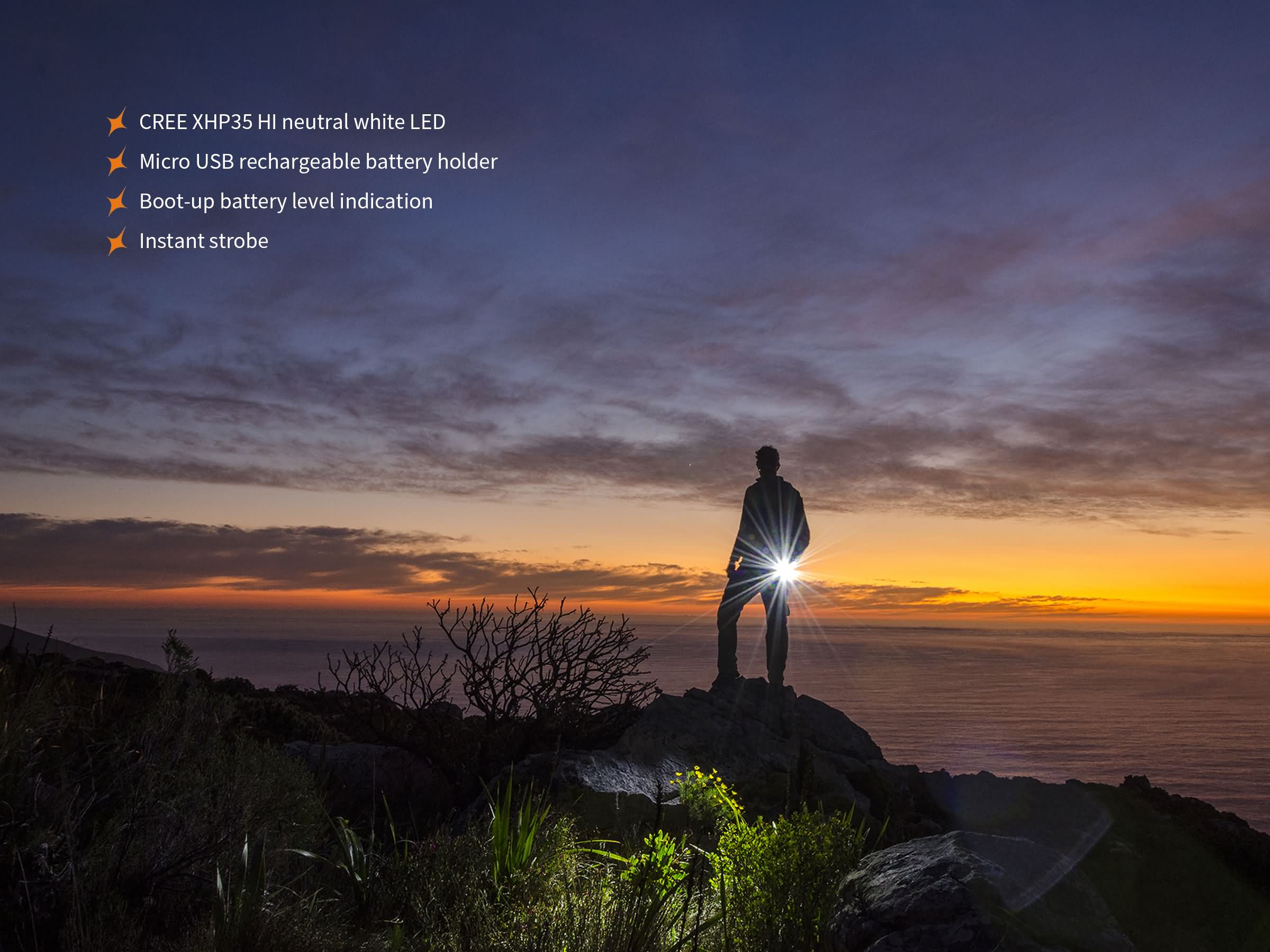 - Vysoko výkonná LED Cree XHP 35 HI s teplejším odtieňom svetla