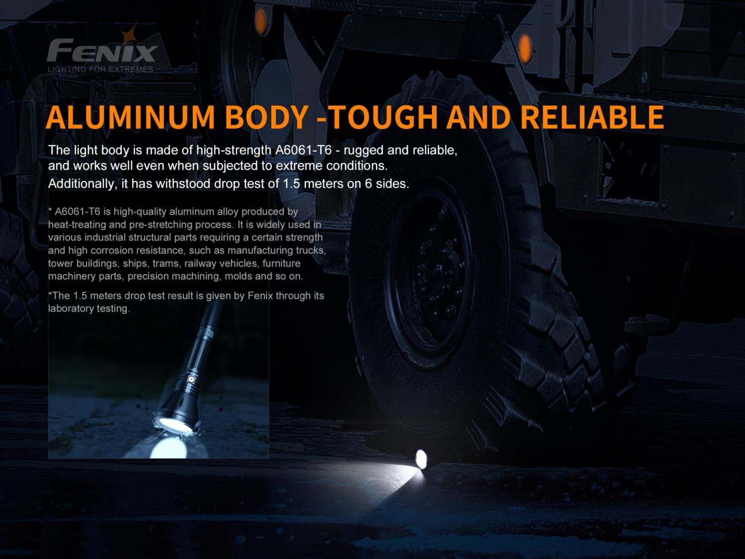 Lovecká svietidlo Fenix HT18 patrí k taktickým svetlám s najväčším dosvitom v ponuke. Jeho mohutný reflektor ponúka dosvit až 925 metrov a svetelný tok až 1500 lúmenov (ANSI). Svetelným zdrojom je vysoko výkonná LED XHP35 HI od amerického výrobcu Cree. Na napájanie slúži jeden Li-ion akumulátor typu 21700 s kapacitou 5000 mAh a zabudovaným nabíjacím USB-C konektorom (akumulátor je súčasťou balenia), v prípade núdze možno k napájaniu využiť aj 18650 akumulátor s pribalenou redukciou.