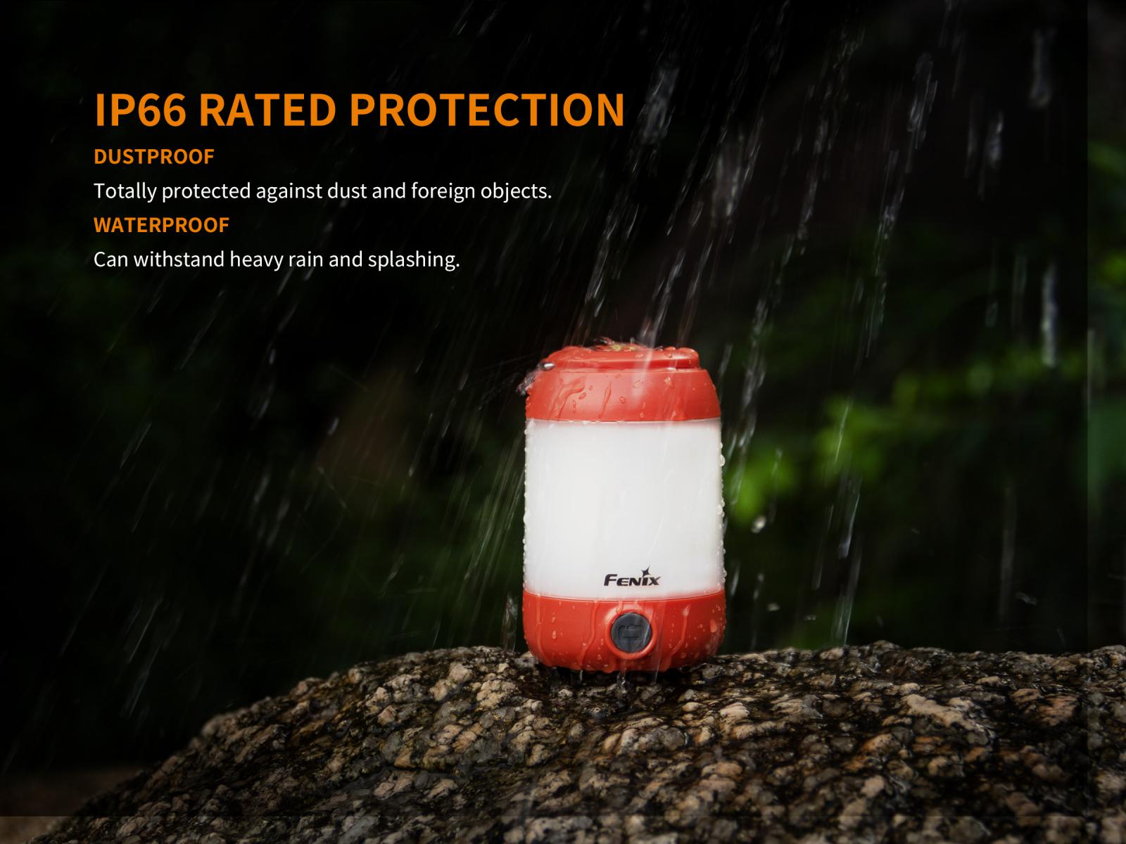 Vďaka odolnej a nárazuvzdornej konštrukcii s krytím IP66 možno svetlo bezpečne používať aj v nepriaznivom počasí (silný dážď). Horná strana lucerny je opatrená závesným okom a závitom pre upevnenie na statív. Vďaka kompaktným rozmerom a váhe 140 gramov je lucerna obzvlášť vhodná na turistiku.