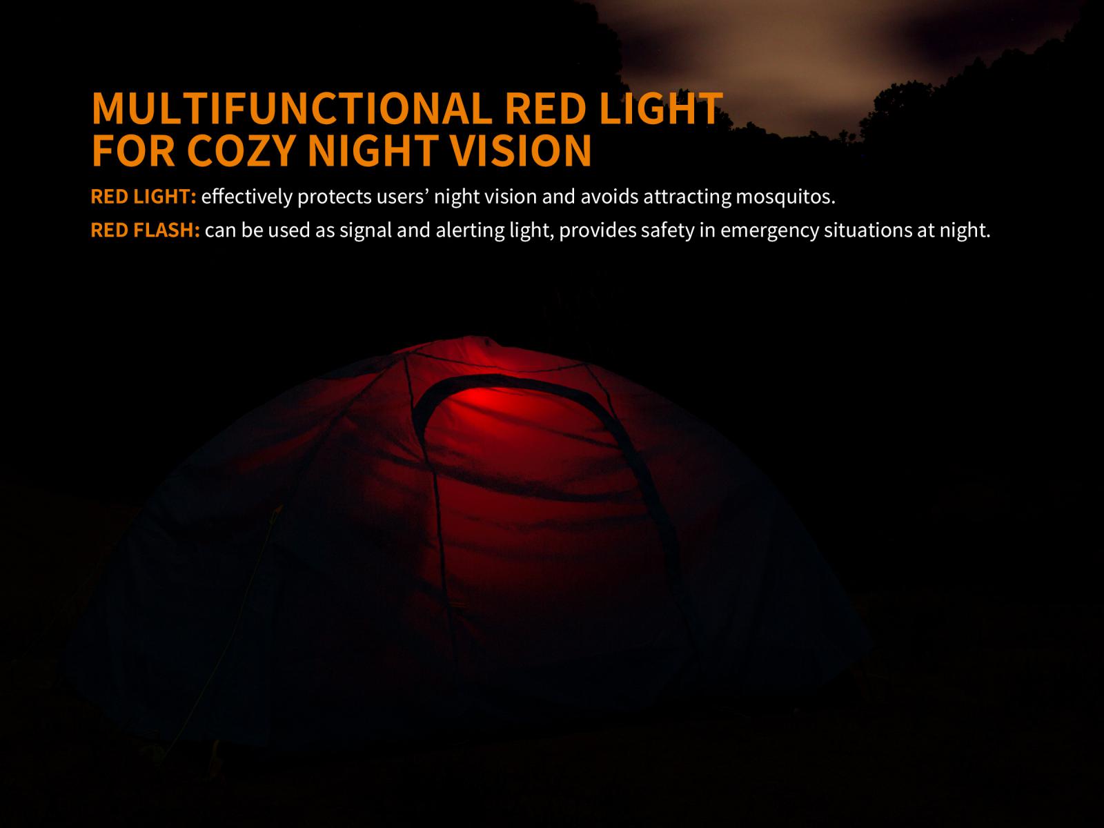 Bočné svietenie a spodné svietenie sú veľmi praktické funkcie výrazne šetriace energiu. Hodia sa najmä v situáciách, kedy nie je kruhové všesmerové osvetlenie nutné. Lucerna je tiež vybavená funkciou predĺženia výdrže. Pri dlhšom použití v režimoch turbo (300 lúmenov) a vysokom (150 lúmenov) lucerna postupne znižuje výkon v malých krokoch pre dosiahnutie dlhšej doby svietenia.