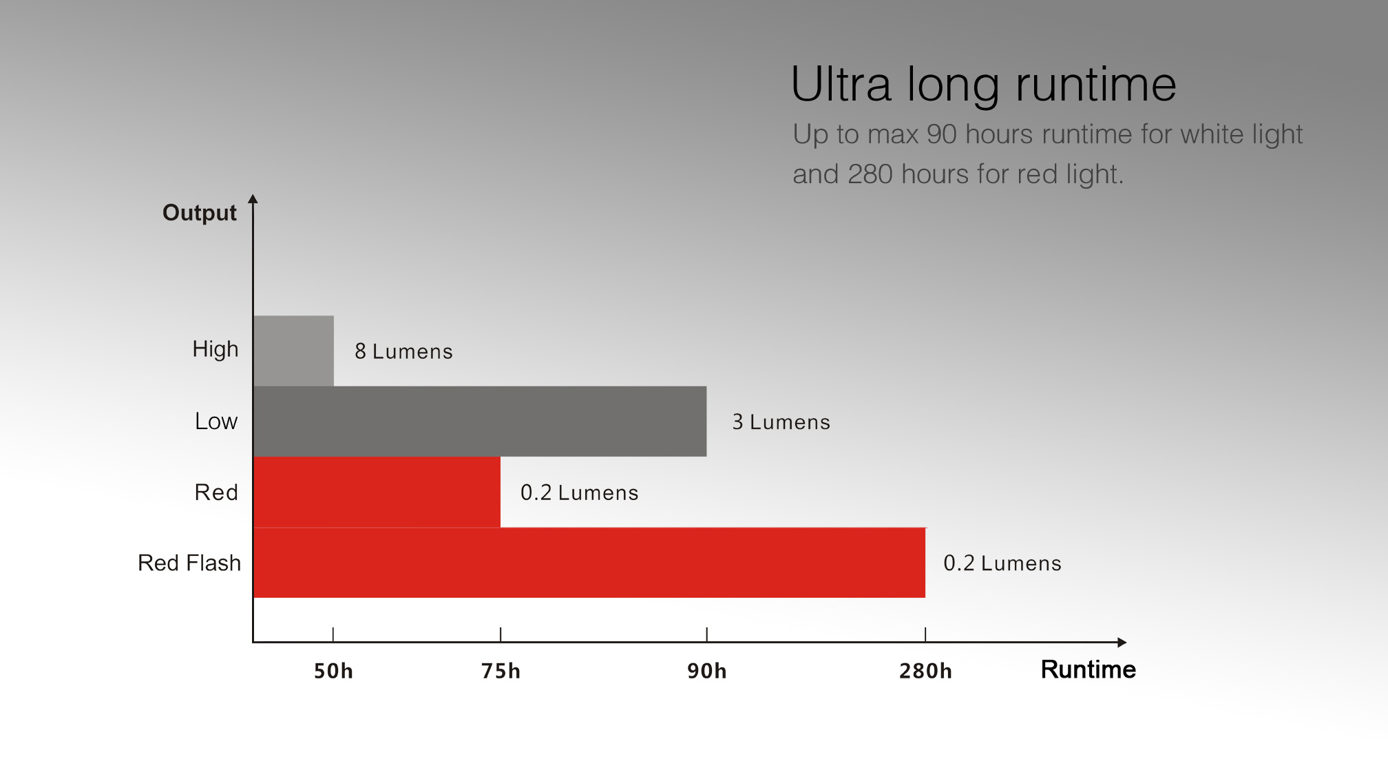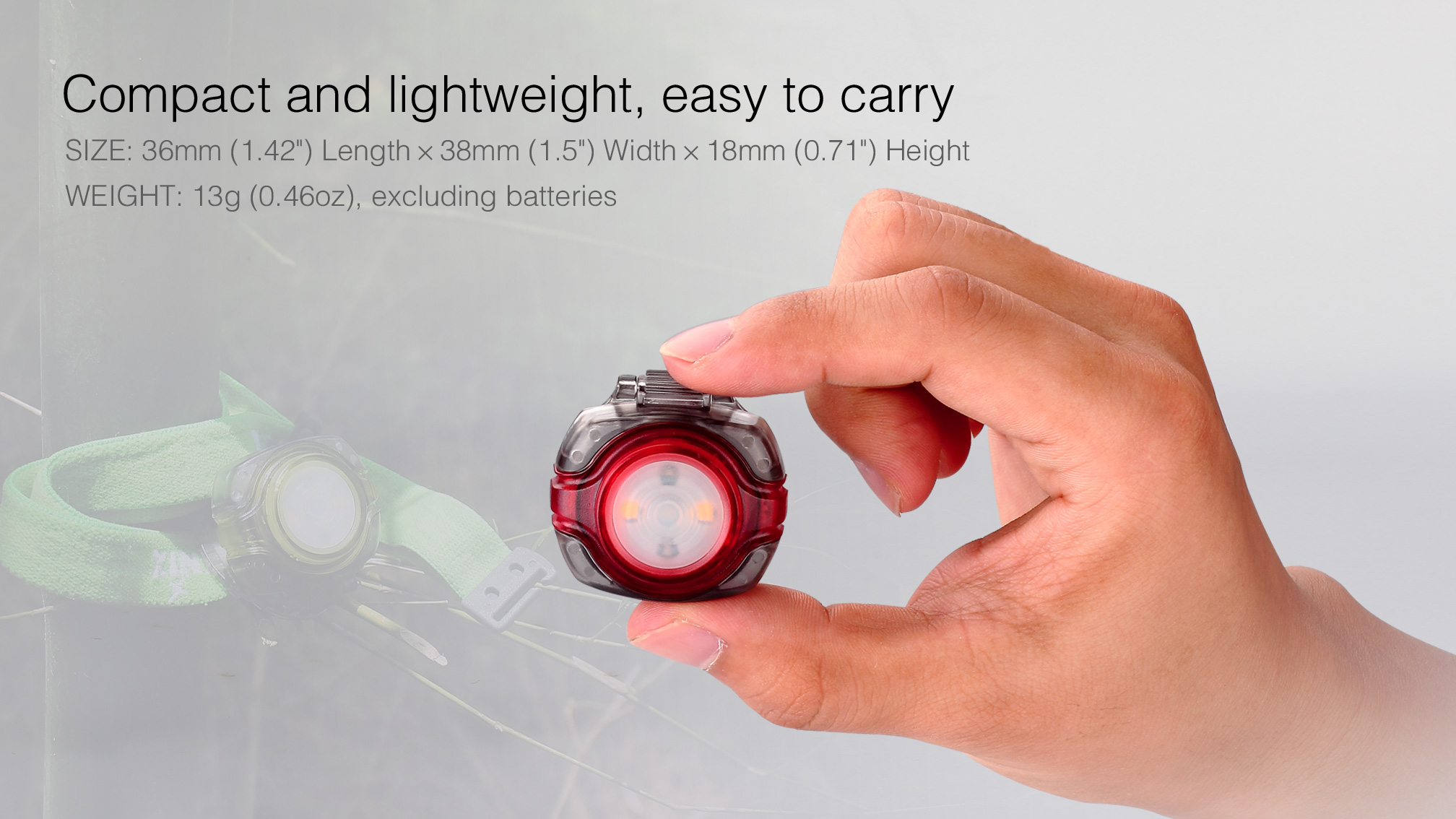 | Výkon (lúmeny) | 3 | 8 | 0,2 | 0,2 | 4,5 m | 5,3 cd | 1 m | IPX8, 2 m pod vodou | 18 mm | 36 mm | 38 mm | 13 g (bez batérií) |