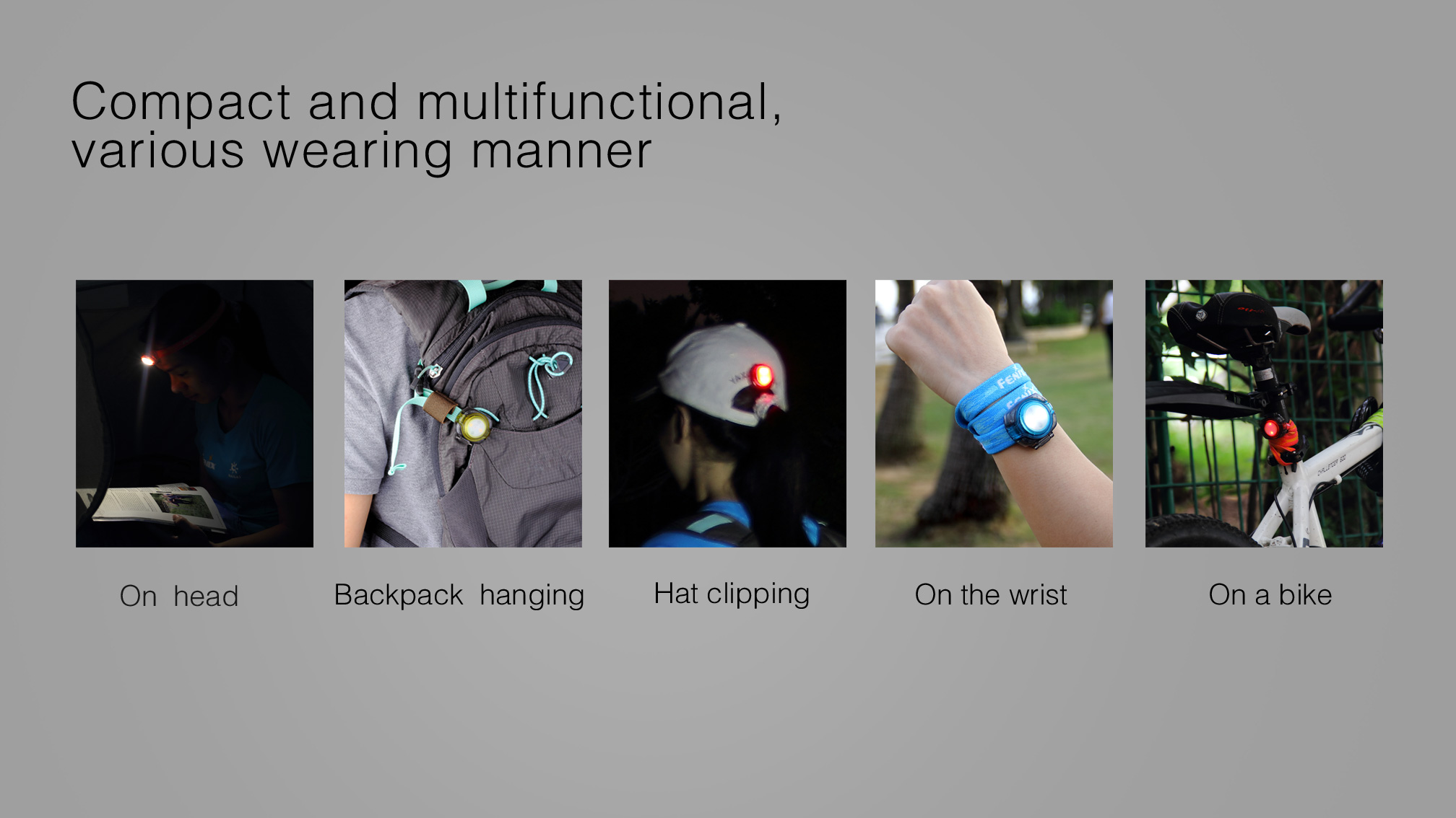 - Štyri režimy intenzity vrátane červeného blikania