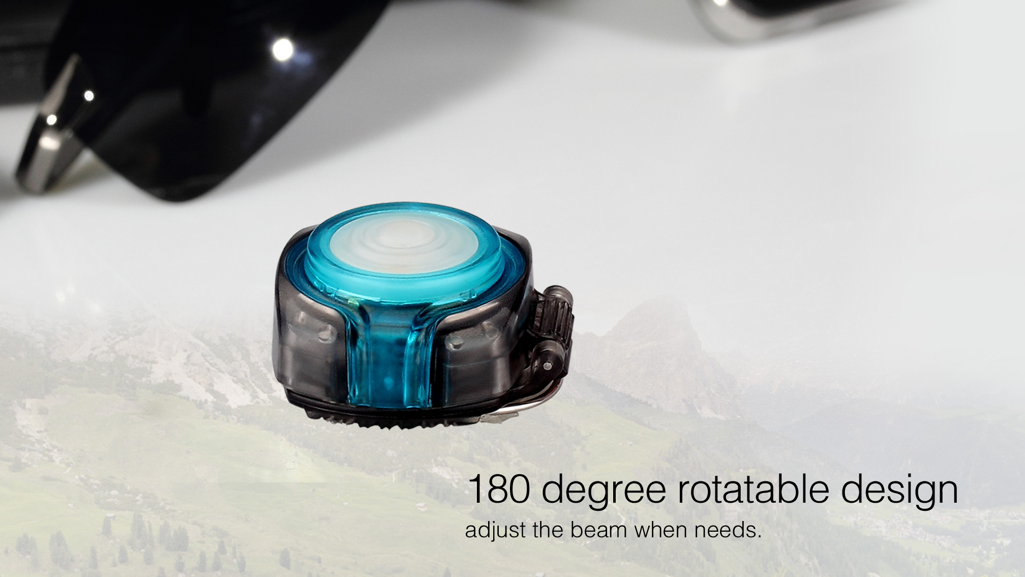- Čelovku je možné otáčať v držiaku v rozsahu 180°