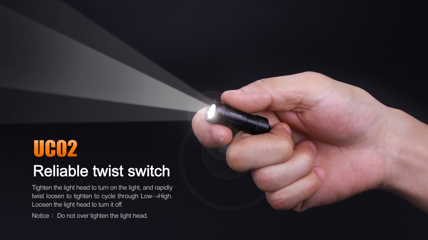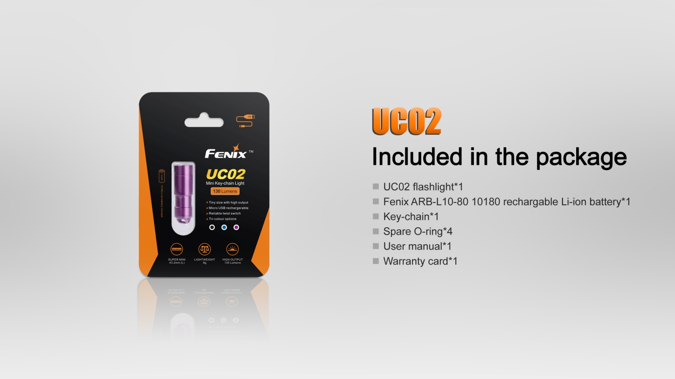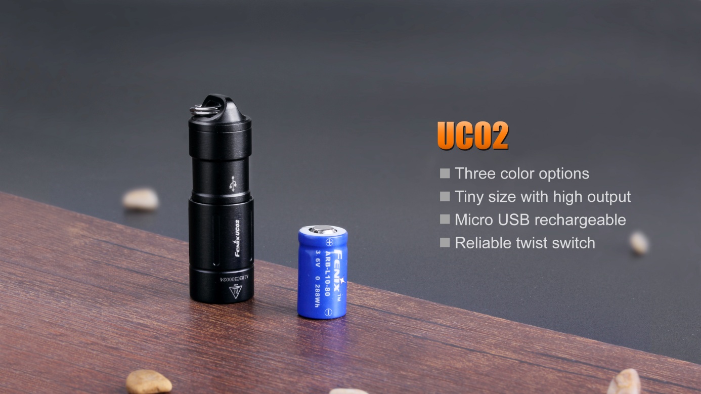 Fenix UC02 je miniatúrny nabíjacie baterka, ktorú možno nosiť napríklad na kľúčoch. Aj napriek minimálne rozmery ponúka vynikajúci svetelný výkon aj dosvit. Na napájanie slúži Li-ion akumulátor typu 10180, ktorý sa nabíja cez micro-USB konektor a je súčasťou balenia. K dispozícii sú dva režimy intenzity s výdržou až 3,8 hodiny. Zapnutie a vypnutie sa vykonáva jednoducho utiahnutím a povolením hlavy svietidla, svetelné režimy sa prepínajú jej rýchlym povolením a utiahnutím. S týmto užitočným darčekom urobíte vždy radosť.