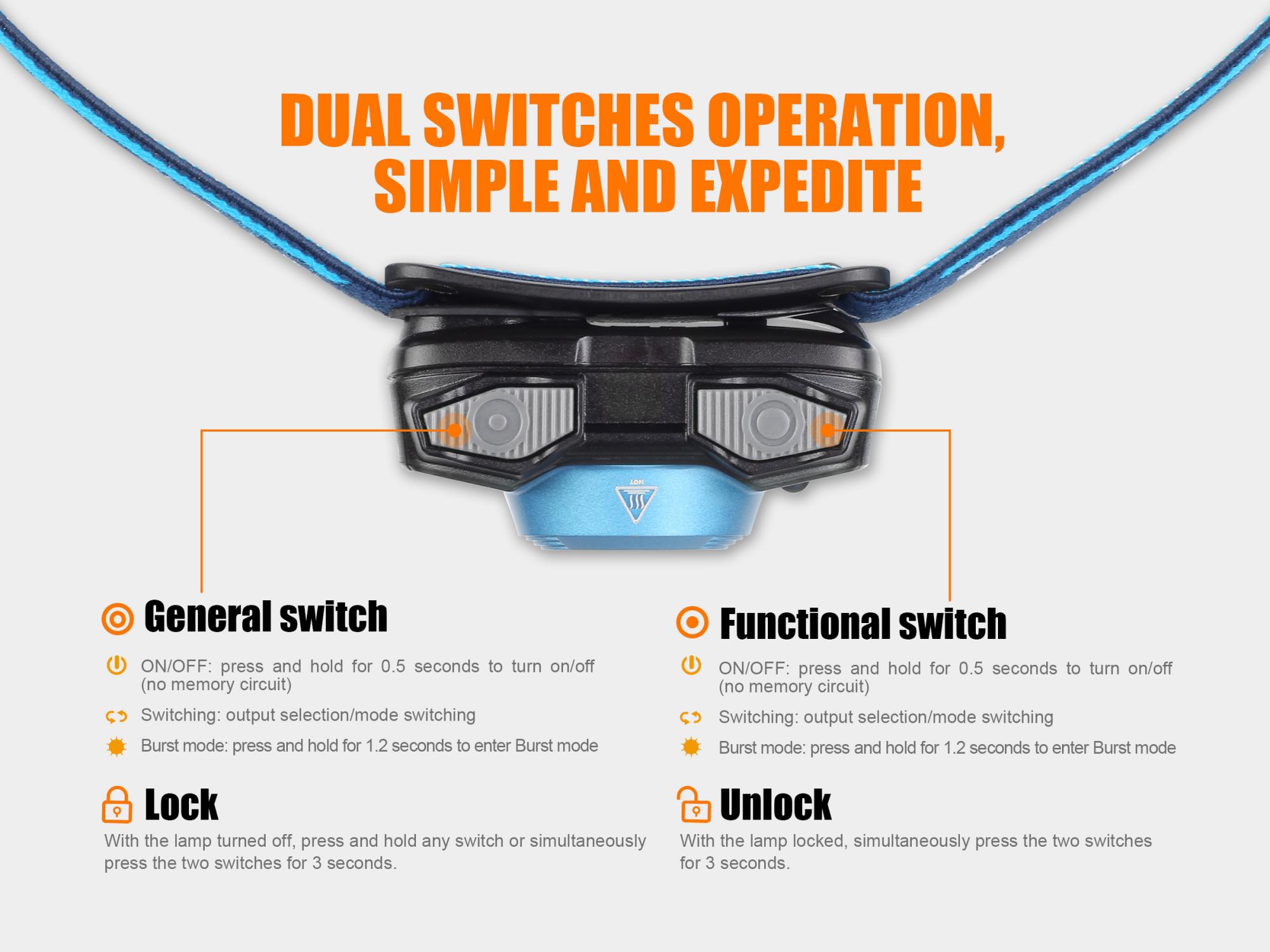 K dispozícii je celkom 8 režimov výkonu vrátane zábleskového režimu SOS pre krízové situácie a dvoch režimov červeného svetla. Čelovka si zachováva vodeodolnosť podľa štandardu IP66, takže bez problémov odolá aj silnému dažďu. Popruh čelovky je opatrený reflexnými prvkami, ktoré zaisťujú dobrú všesmerovú viditeľnosť pri pohybe po ceste. Z vnútornej strany je do popruhu vpletené gumová tkanina, ktorá zaisťuje stabilné a pohodlné nosenie na hlave. Vďaka váhe iba 73 gramov tak Fenix HL12R výborne poslúži na turistiku, behanie, kempovanie, fotenie, lezenie, ako čelovka pre rybárov a ďalšie aktivity.