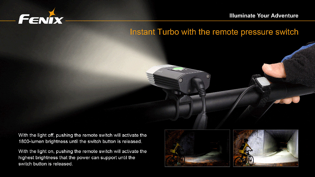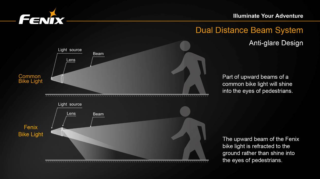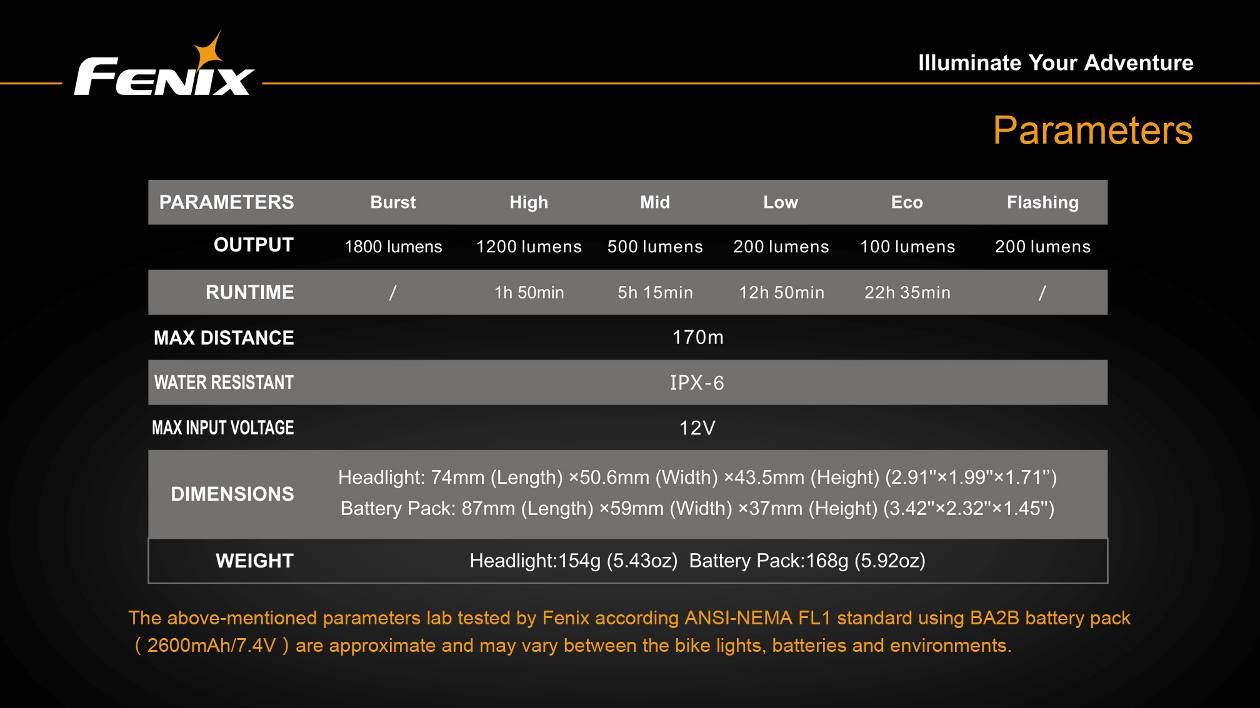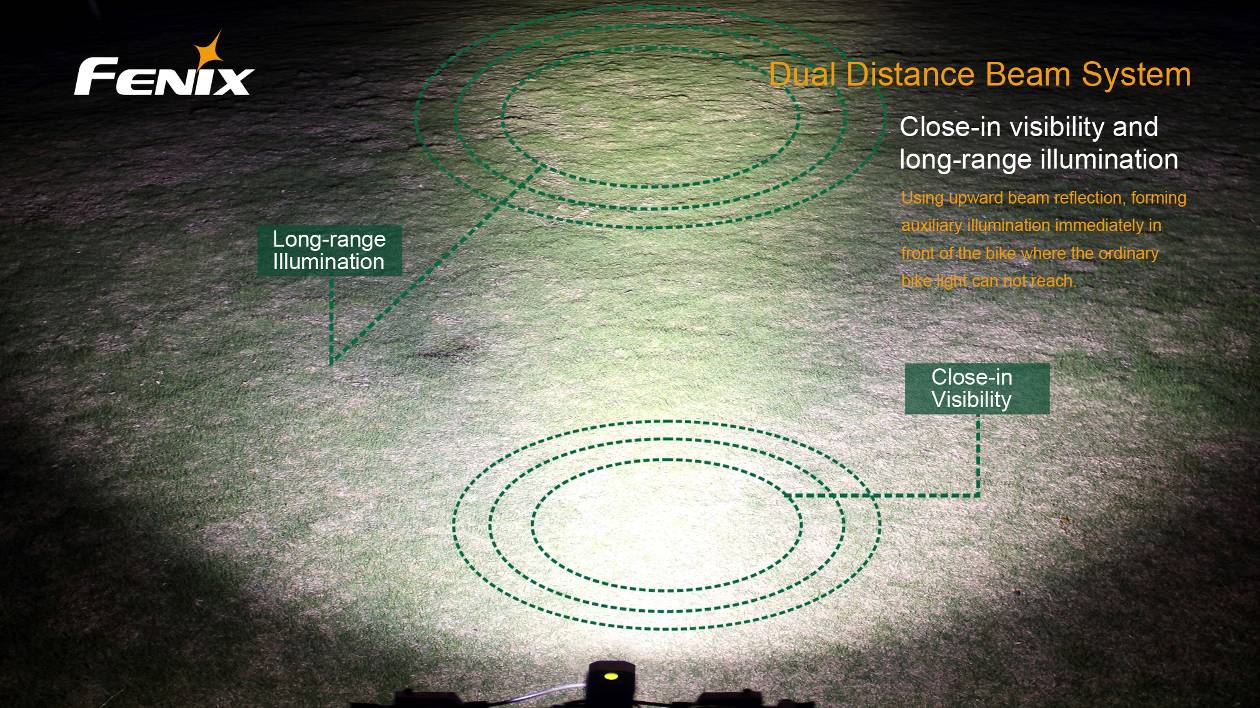 Nabíjacie cyklo svietidlo Fenix BT30R, so svetelným tokom až 1800 lúmenov, je napájané externým li-ion akumulátorom s kapacitou 19,2 Wh (2600 mAh, 7,4 V). Svetelným zdrojom sú dve diódy Cree XM-L2 s teplejším odtieňom bieleho svetla. Výhodou tohto odtieňa je prirodzenejšie a kontrastnejšie podanie farieb v teréne. Špeciálne tvarovaná optika Dual Distance Beam System vytvára svetelný kužeľ kombinujúci široké periférne osvetlenie a dosvit až do vzdialenosti 170 metrov. Fenix BT30R ponúka dokopy šesť režimov výkonu, vrátane blikajúceho režimu. Nabíjacie svietidlo Fenix BT30R vám zaistí kvalitné osvetlenie na nočných tréningoch, pri pravidelnom dochádzaní do práce, aj na vytrvalostných pretekoch.