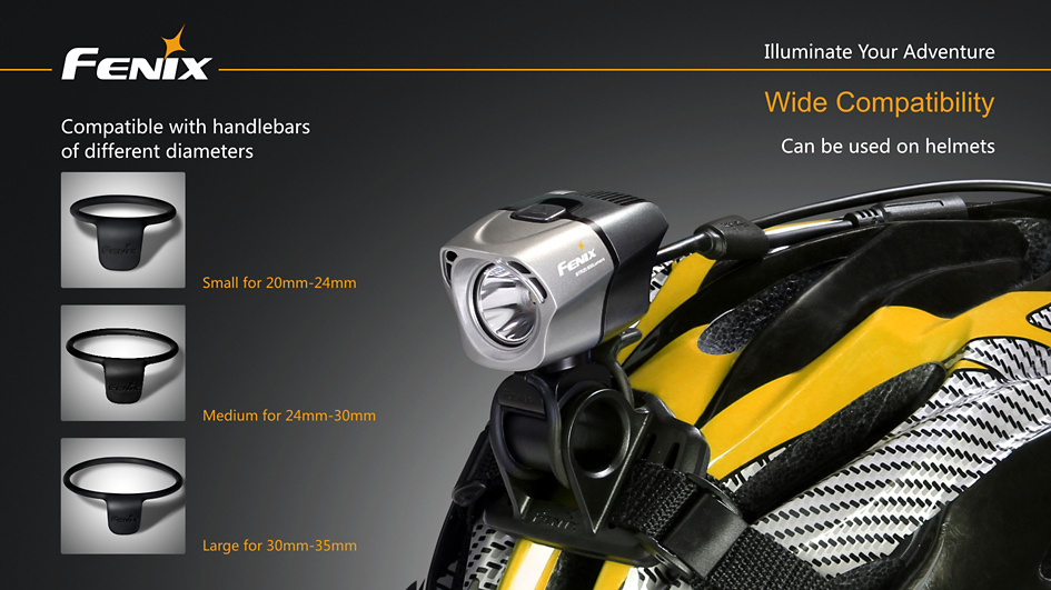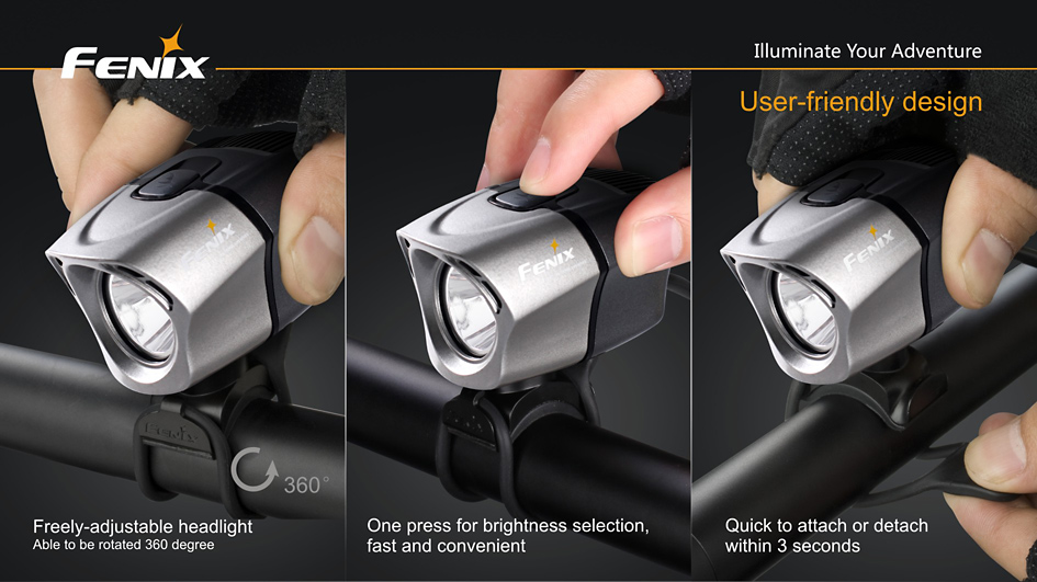 Svietidlo tiež disponuje šikovným držiakom pre rýchlu montáž i demontáž svetla na riadidlá alebo helmu bez použitia náradia, držiak navyše umožňuje i plynulé nastavenie smeru svietenia.