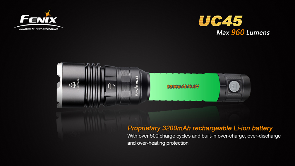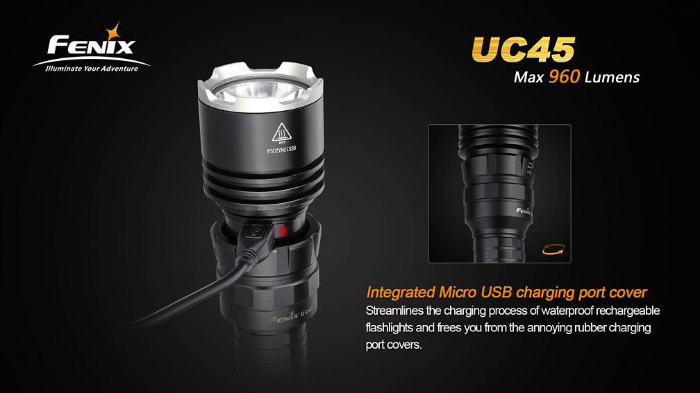 Nabíjacia baterka Fenix UC45 poskytuje vysoký svetelný tok až 960 lúmenov (ANSI) a je osadená špičkovou LED Cree XM-L2. Napájanie zaisťuje interná lítium-iontová batéria s kapacitou 3200 mAh, ktorá sa nabíja priamo vo svetle pomocou micro USB konektora.