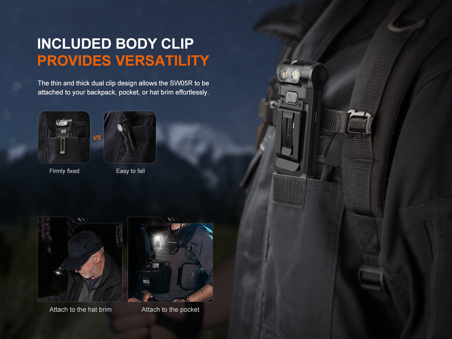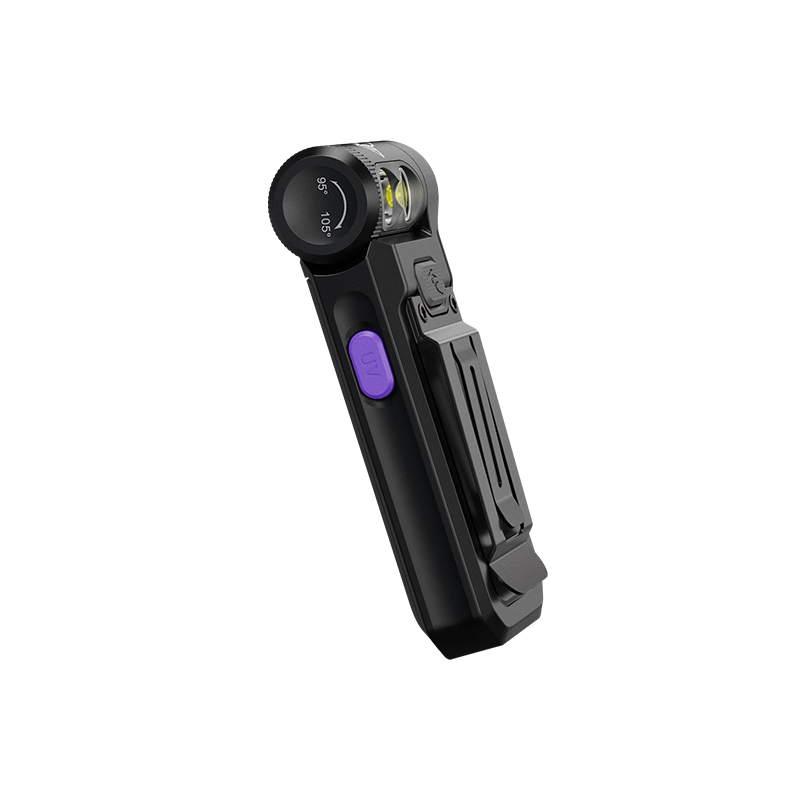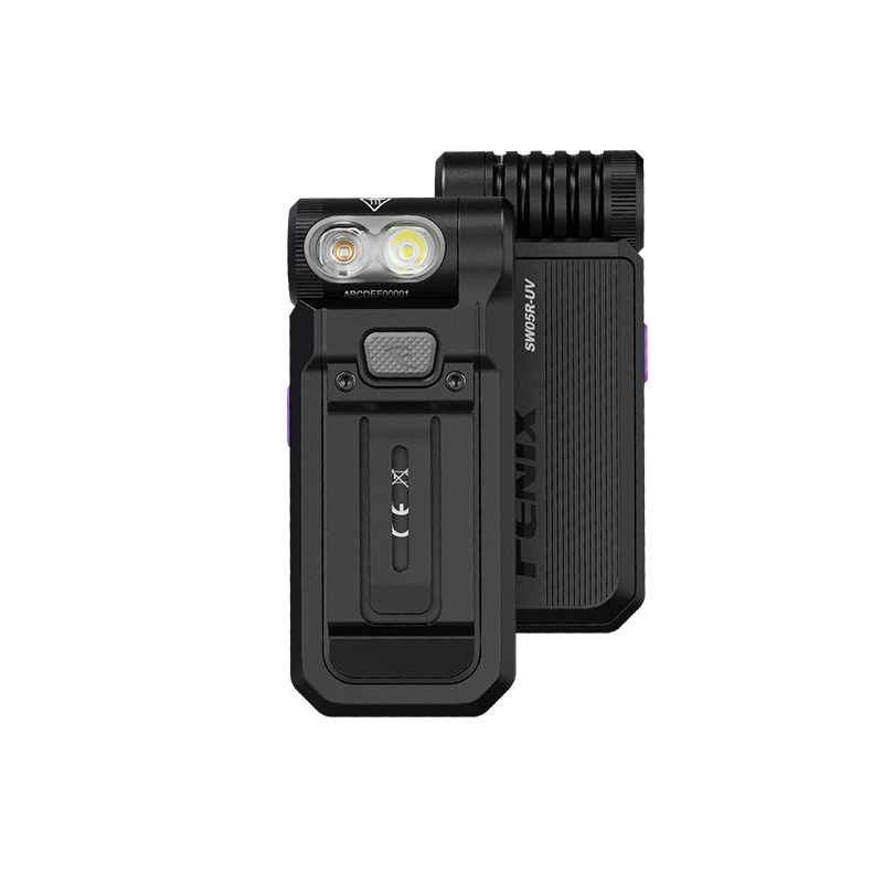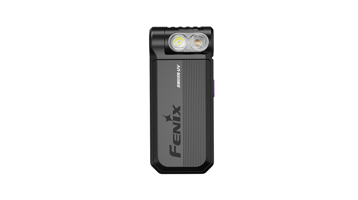 Fenix SW05R-UV je multifunkčné svietidlo s otočnou hlavou, kompaktnými rozmermi a hmotnosťou iba 55 gramov. Ponúka svetelný tok až 150 lúmenov (ANSI). Svetelný kužeľ rovnomerne osvetľuje široký priestor do vzdialenosti až 39 metrov. Na napájanie slúži integrovaný akumulátor s kapacitou 700 mAh, ktorý sa nabíja cez moderný USB-C konektor na boku svietidla. K dispozícii sú celkom tri režimy bieleho svetla a UV svetlo s vlnovou dĺžkou 365 nm o sile 1500 mW. Svietidlo je dodávané vrátane pevného klipu, takže ho môžete uchytiť na vrecko, popruh batohu či šilt čiapky a uvoľniť tak pri svietení ruky. Vďaka magnetu v pätke svietidla ho môžete prichytiť na čokoľvek železné. Hlava s diódami je otočná v rozsahu 200 stupňov. To robí svietidlo v kombinácii s možnosťami uchytenia veľmi praktické. SW05R využijú najmä policajti a ďalší profesionáli v službe a pri práci, ale skvelá je aj na EDC. Vďaka malým rozmerom, plochému tvaru a váhe ho môžete mať stále pri sebe.
