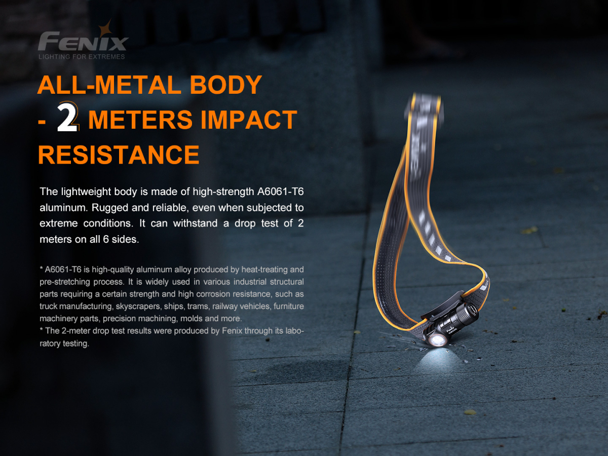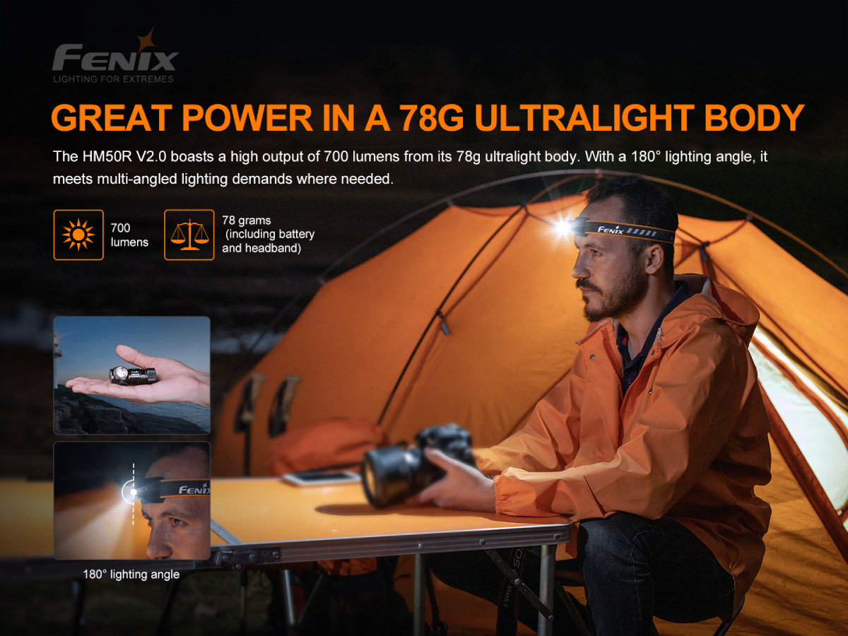 Celokovová konštrukcia zaisťuje vysokú odolnosť, optimálne chladenie a zároveň je plne vodotesná podľa štandardu IP68 až do hĺbky 2 metre pod vodou. Praktickosť čelovky zvyšuje možnosť vyňať svetlo z hlavového držiaka a používať ho aj ako malú vreckovú baterku. Čelovka Fenix HM50R V2.0 je ideálnym spoločníkom pre rôznorodé športové aktivity, výlety do prírody i do domácnosti a na prácu.