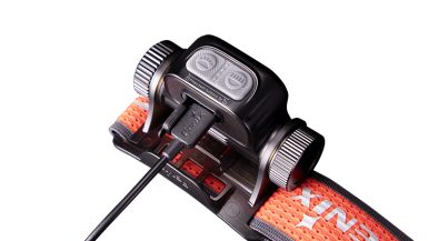 Nabíjanie – odklopte krytku USB-C konektora a zapojte priložený nabíjací kábel, druhý koniec kábla zapojte do počítača, powerbanky alebo USB adaptéra do elektrickej siete či auta (nie sú súčasťou balenia). Počas nabíjania stavové LED ukazujú priebeh nabíjania. Po skončení nabíjania svietia všetky štyri. Nabitie úplne vybitého akumulátora trvá cca 3 hodiny. Počas nabíjania je možné čelovku používať iba v nízkom režime hlavného alebo sekundárneho reflektora.