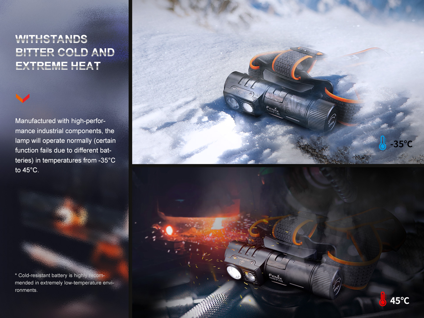 Celokovová konštrukcia zaisťuje vysokú odolnosť, optimálne chladenie a zároveň je plne vodotesná podľa štandardu IP68 až do hĺbky 2 metre pod vodou. Odolnosť umocňuje ochranná krytka okolo reflektorov z nerezovej ocele. Praktickosť čelovky zvyšuje možnosť vybrať svetlo z hlavového držiaka a používať ho aj ako vreckové či pracovné svietidlo. Navyše je čelovka opatrená oceľovou odnímateľnou sponou, takže ju ľahko uchytíte na vrecko či popruh. Multifunkčné svietidlo Fenix HM71R ocenia speleológovia, horskí vodcovia, skialpinisti, horolezci, cyklisti, záchranári, horská služba, ale napríklad aj opravári a pracovníci v priemyselných odvetviach a tiež turisti alebo rybári.