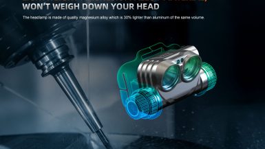 - Vnútri čelovky je použitý najnovší akumulátor 18650 s kapacitou 4000 mA namiesto 3400 mAh pri štandardnej verzii.