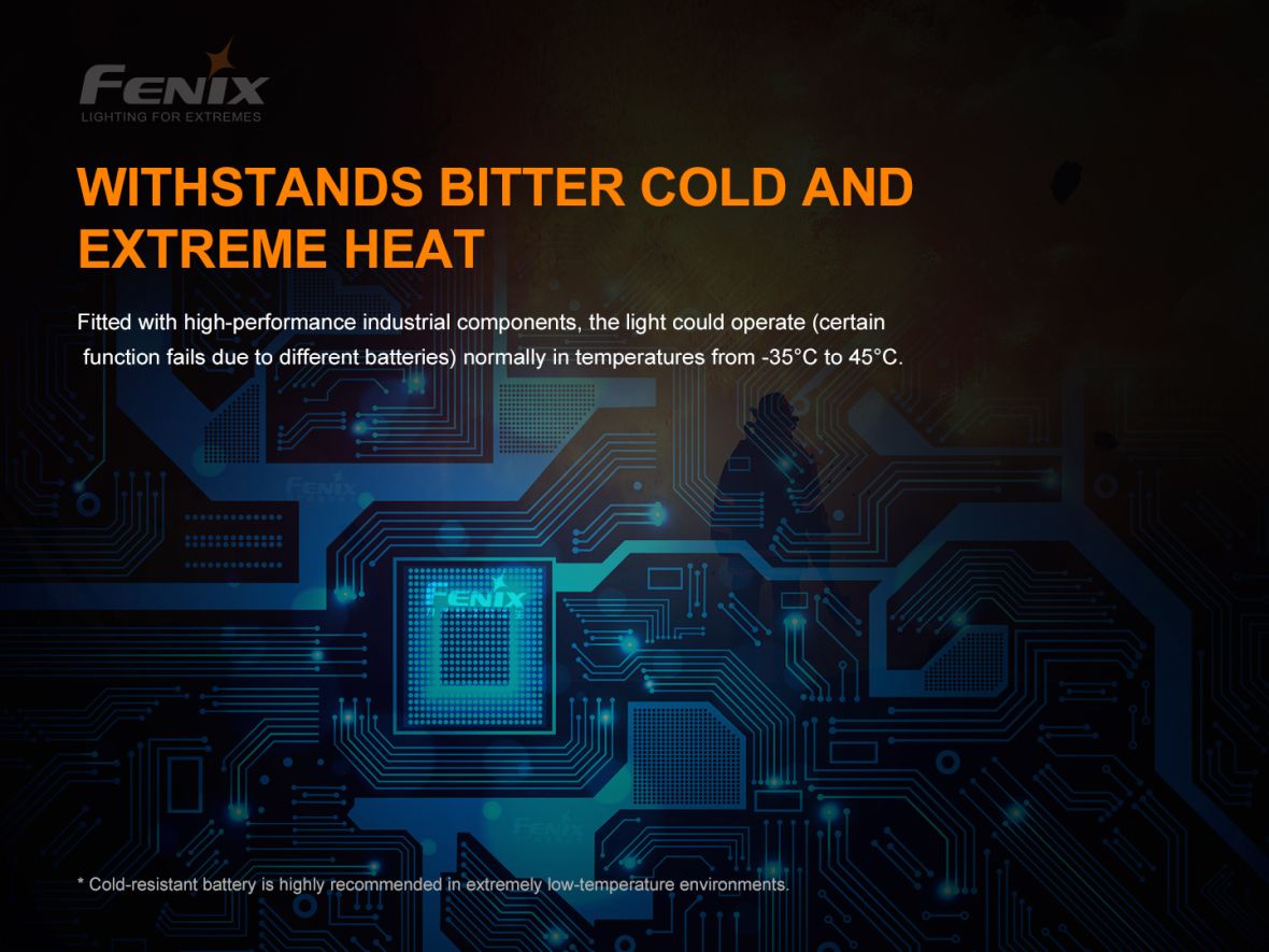 - Používa špeciálny Li-ion akumulátor Fenix ARB-L21-2600Ex s kapacitou 2600 mAh