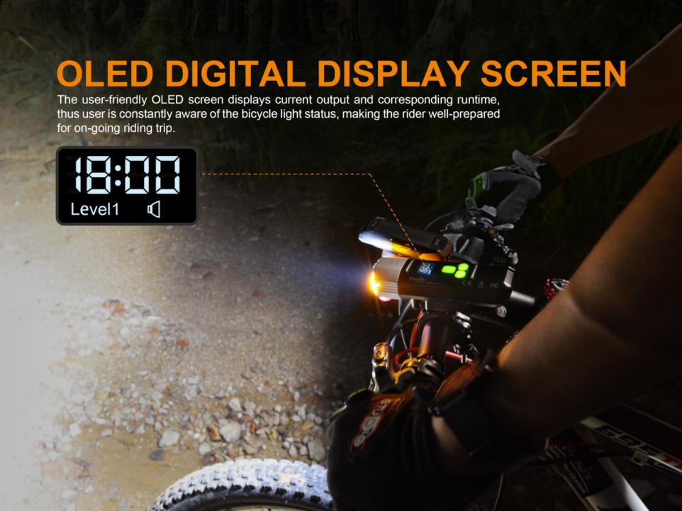 K dispozícii je celkom šesť digitálne regulovaných režimov výkonu vrátane varovného blikania. Na cyklosvetle sa nachádza aj informačný OLED displej, ktorý zobrazuje stav nabitia akumulátora, zvolený režim a zostávajúcu dobu svietenia. Svetlo na bicykel Fenix BC35R vám zaistí kvalitné osvetlenie na nočné tréningy, pravidelné dochádzanie do práce aj na vytrvalostné preteky.