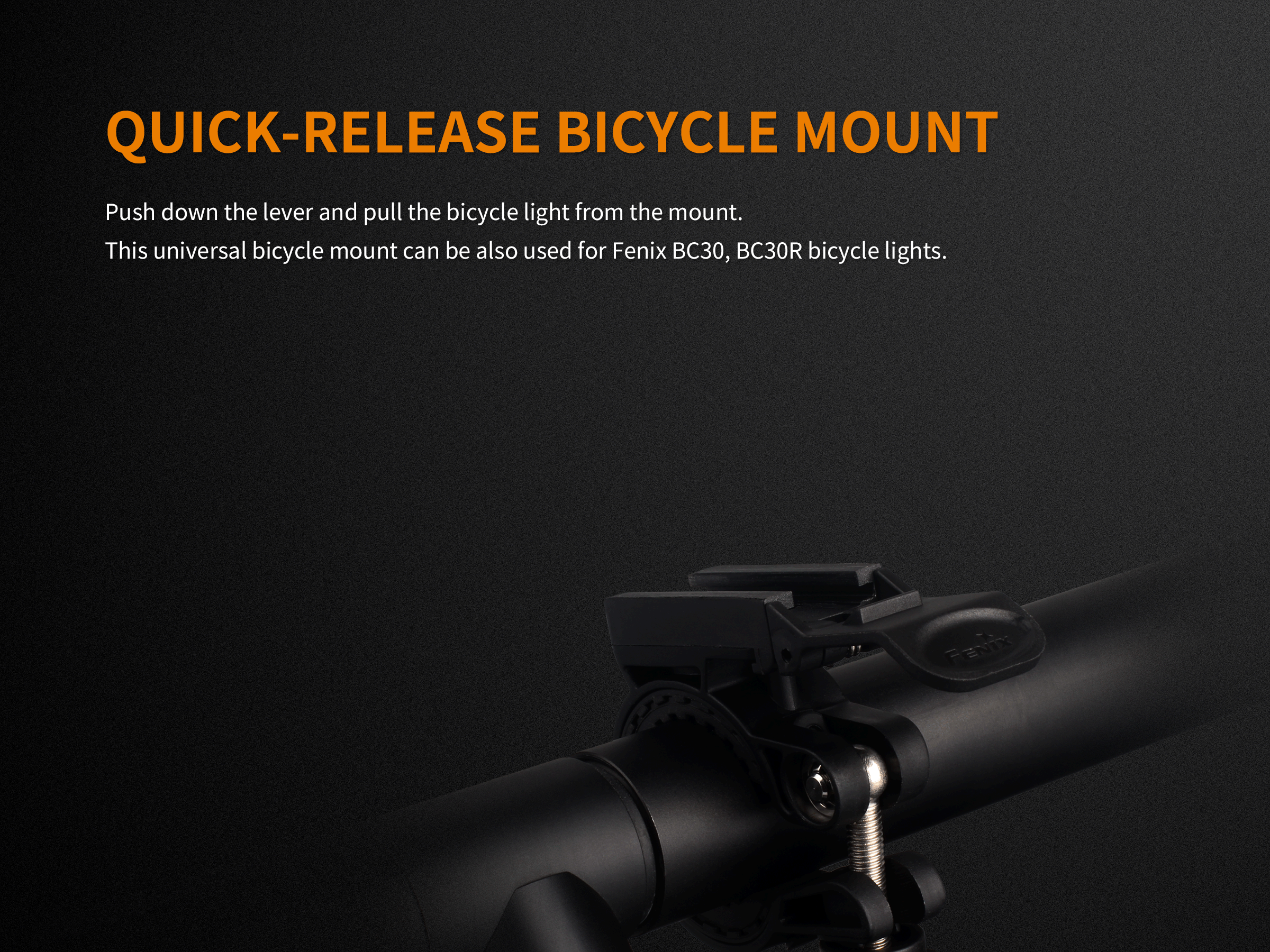 Dizajn držiaku umožňuje rýchlu montáž i demontáž svetla na riadidlá bez použitia náradia, držiak navyše umožňuje rýchle vybratie svietidla, takže ho možno použiť aj ako vysoko výkonnú ručnú baterku. Držiak je možné použiť na všetky bežné riadidlá s priemerom od 20 až do 32 milimetrov.