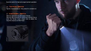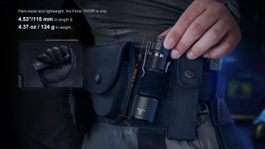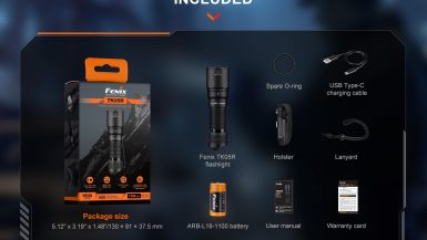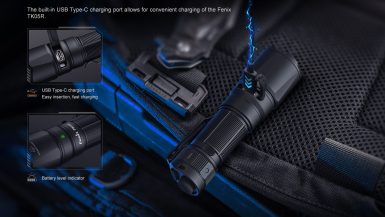 Fenix TK05R je vreckové nabíjateľné taktické svietidlo s jednoduchým ovládaním, s možnosťou rýchlej aktivácie stroboskopu a výkonom až 1000 lúmenov. Je osadené špičkovou LED Osram CSLPM1.TG, vďaka ktorej má skvele zaostrený kužeľ a dosvieti až do vzdialenosti 450 metrov. Svietidlo používa duálny taktický spínač, ktorý umožňuje rýchlejšie a spoľahlivejšie ovládanie v krízových situáciach. Hlava svietidla je vybavená úderným ráfikom, takže možno svietidlo použiť na prerazenie skla či na sebaobranu. Robustné prevedenie umožňuje použitie svietidla na dlhých zbraniach, je tak vhodné pre profesionálov, ozbrojené zložky i poľovníctvo. Svietidlo je napájané z jedného kompaktného Li-ion 18350 1100 mAh akumulátora (je súčasťou balenia), ktorý sa nabíja priamo vo svietidle cez moderný USB-C konektor a dodá energiu až na 14,5 hodiny svietenia. Solídny a vodeodolný dizajn predurčuje toto taktické svietidlo primárne pre drsné vonkajšie podmienky a pre použitie v bezpečnostných zložkách, pri vyhľadávaní, záchranných akciách a na poľovníctvo.