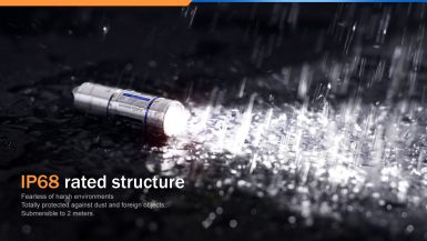 | Výkon (lúmeny) | 10 | 130 | 48 m | 570 cd | 1 m | IP68, 2 m pod vodou | 43,2 mm | 1,4 mm | 20,4 g (vrátane batérií) |