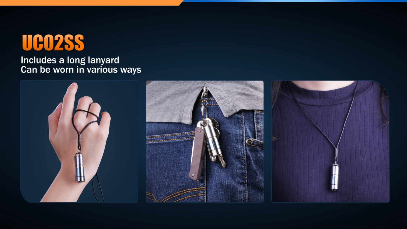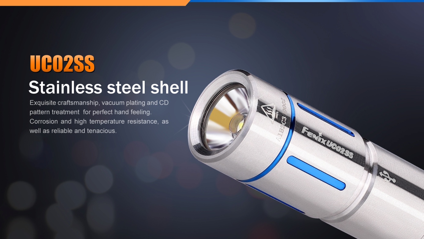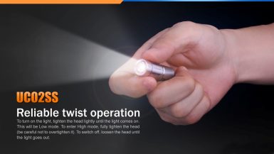 Fenix UC02SS je miniatúrny nabíjacie svietidlo v exkluzívnom prevedení z nerezovej ocele, ktorú možno nosiť napríklad na kľúčoch. Aj napriek minimálne rozmery ponúka skvelý svetelný tok a dosvit. Na napájanie slúži Li-ion akumulátor typu 10180, ktorý sa nabíja cez micro-USB konektor a je súčasťou balenia. K dispozícii sú dva režimy intenzity s výdržou až 3,8 hodiny. Svietidlo sa zapína utiahnutím hlavy. Ľahkým utiahnutím sa zapne na nízky výkon a silnejším dotiahnutím sa zapne vysoký výkon. S týmto užitočným darčekom urobíte vždy radosť.