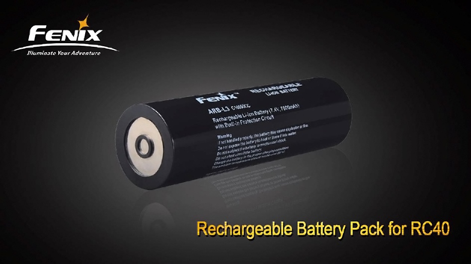 Náhradný li-ion akumulátor ARB-L3 s napätím 7,4V a kapacitou 7800 mAh pre ultra výkonné nabíjacie svietidlo Fenix RC40.