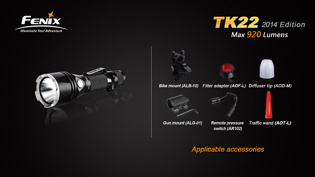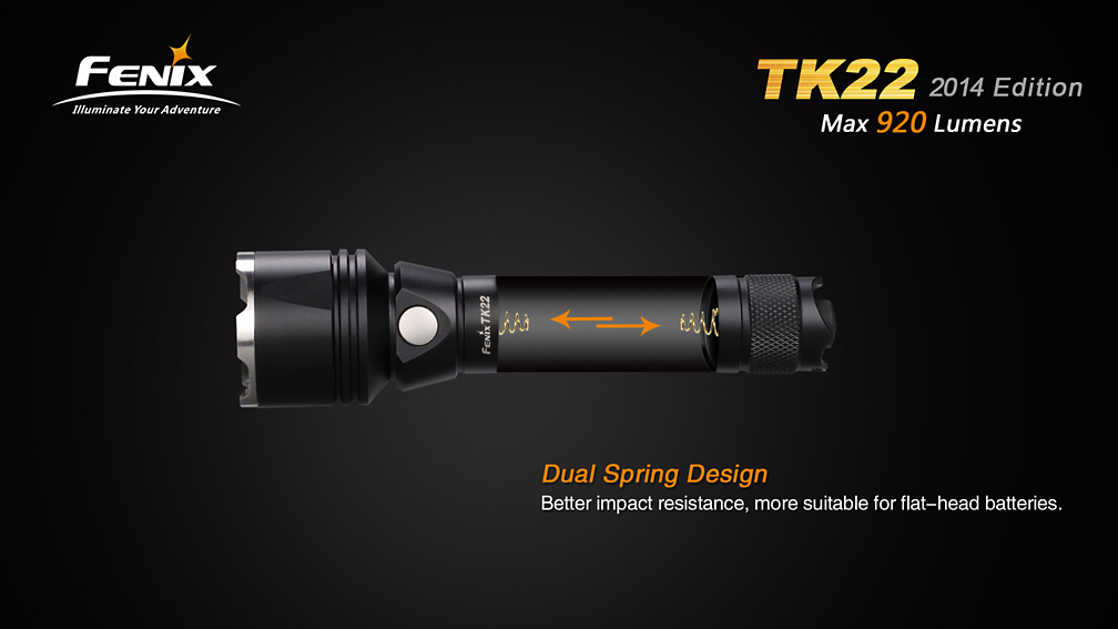 Tretia generácia taktické baterky Fenix TK22 ponúka zvýšený svetelný tok až 920 lúmenov vďaka špičkovej svetelnej dióde Cree XM-L2 U2 (účinnosť až 180 lm/W). Solídny a vodeodolný design predurčuje toto taktické svetlo primárne pre drsné vonkajšie podmienky a pre použitie v bezpečnostných zložkách alebo poľovníctve. Napríklad pri vyhľadávaní, záchranných akciách a pre identifikáciu vzdialených cieľov. Fenix TK22 XM-L2 disponuje celkom piatimi režimami výkonu s výdržou až 150 hodín, ktoré možno ľahko prepínať bočným tlačidlom.