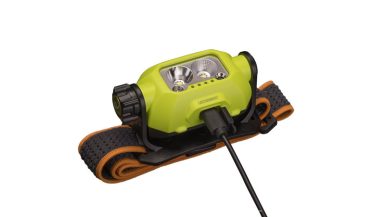 • Súčasťou balenia je čelovka s popruhom a USB-C nabíjací kábel.
