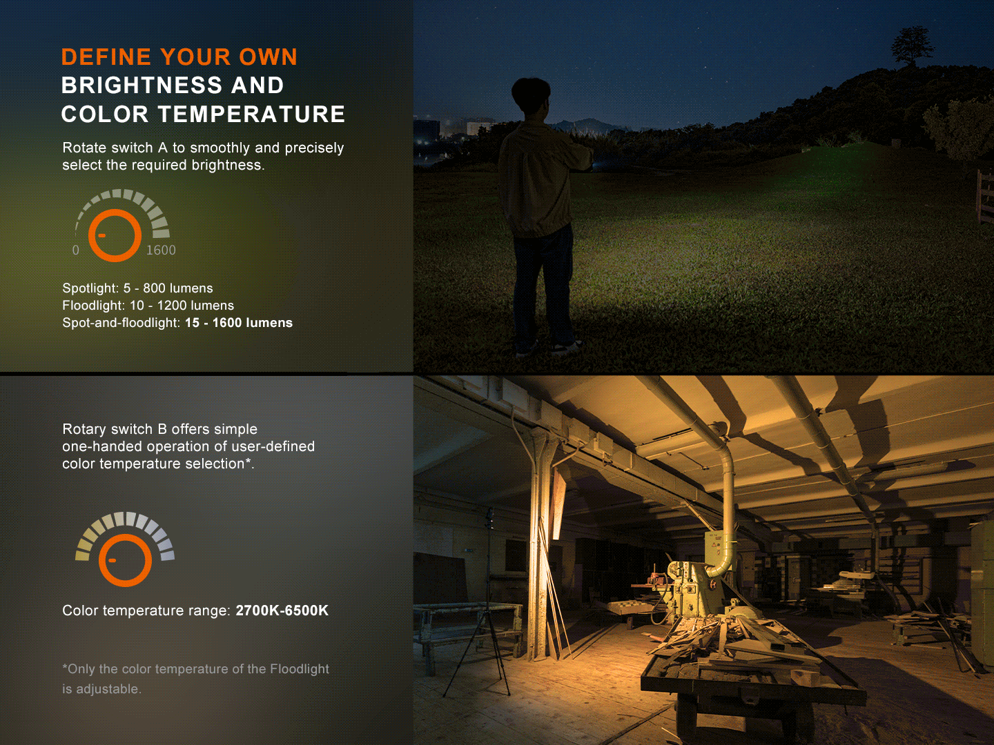 Fenix CL27R je multifunkčný nabíjateľný lampáš a svietidlo. Navyše skvele funguje aj ako dobíjateľné pracovné svetlo, svetlo pre fotografov či ako svetlo do domácnosti, do stanu či do auta. Vysoko jasná COB dióda poskytuje široký svetelný kužeľ s výkonom až 1200 lúmenov (ANSI), ktorého intenzitu a odtieň je možné plynule regulovať otočnými ovládačmi. Ďalej je k dispozícii diaľkový reflektor s výkonom 800 lúmenov a dosvitom 177 metrov a červené svetlo. Diaľkový a široký reflektor je možné skombinovať a získať výkon až 1600 lúmenov. CL27R je napájaná jedným Li-ion akumulátorom typu 21700 s kapacitou 5000 mAh (súčasť balenia). Batéria sa nabíja priamo v lucerne pomocou USB-C konektora.