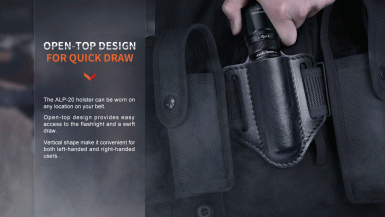 Otvorený dizajn puzdra umožňuje pohotové vytiahnutie a použitie svietidla, takže sa hodí aj na každodenné služobné použitie.