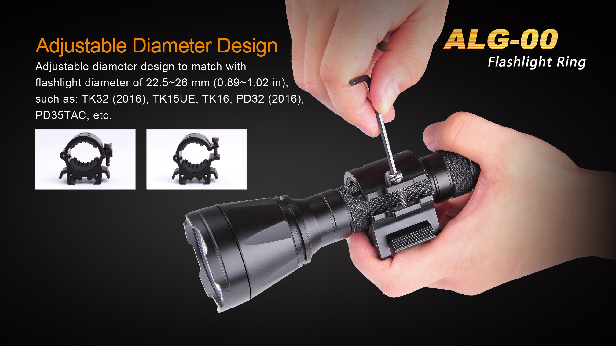 Rýchloupínacie kovová montáž svietidla na normalizovanú zbraňovú lištu (Weaver / Picatinny). Vhodné pre svietidlá s priemerom tela 22,5 – 26,0 mm. Vhodná napríklad pre svietidlá Fenix PD32, Fenix PD35, Fenix UC35, Fenix TK09, Fenix TK15, Fenix TK16, Fenix TK20R, Fenix TK32.