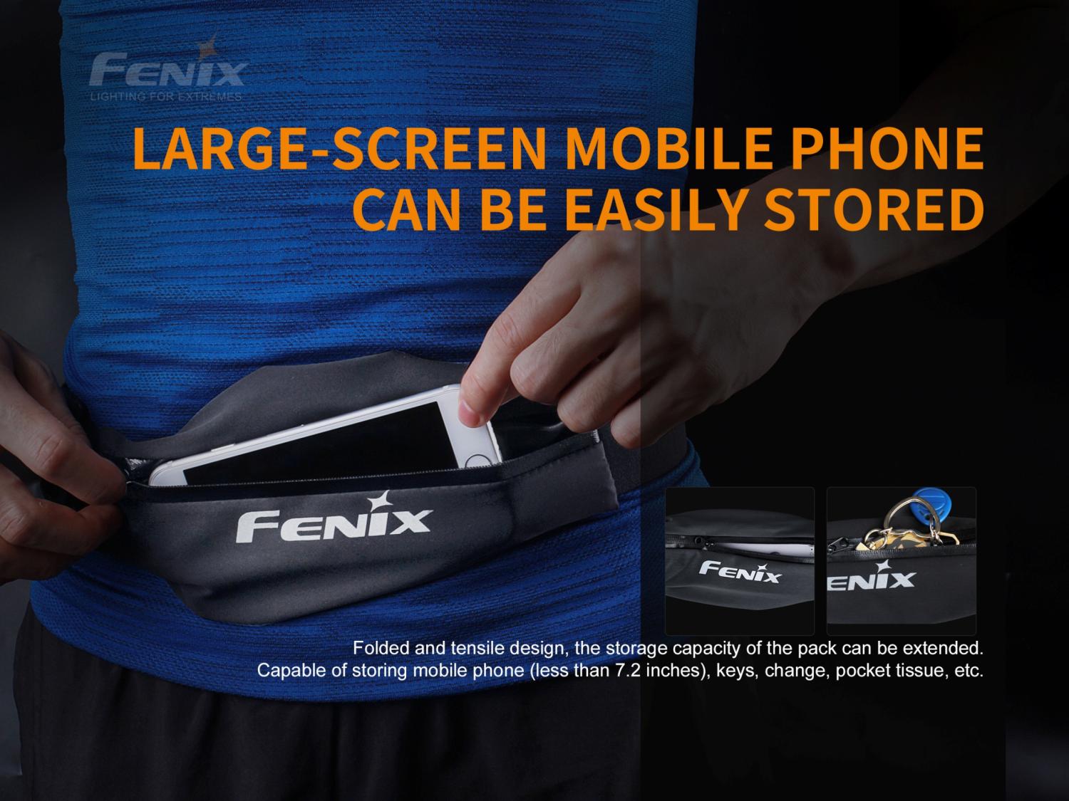 Športová ľadvinka Fenix AFB–10 je určená na behanie a ďalšie športové aktivity. Ľadvinka má vnútornú vrstvu z vodotesného materiálu a zmestí sa do nej aj väčší smartphone. Tiež je vybavená otvorom pre slúchadlá, takže môžete pri športe počúvať svoju obľúbenú hudbu. Nylonový opasok a tenká spona zaručujú pohodlné nosenie. Ľadvinka je tiež vybavená logom Fenix v reflexnom prevedení, ktoré zlepšuje vašu viditeľnosť a bezpečnosť pri večernom a nočnom športovaní.