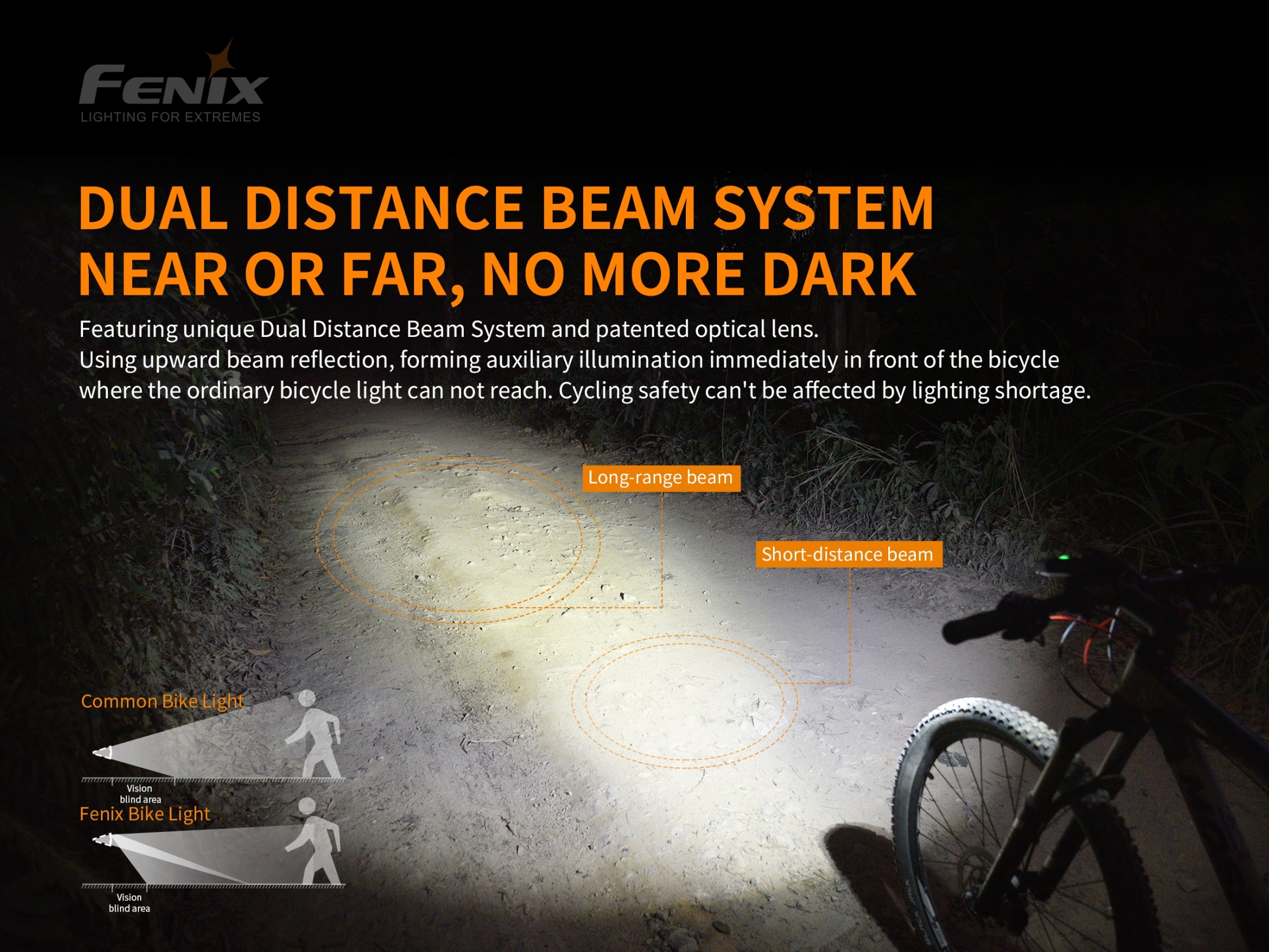 Druhá generácia extrémne výkonného svetla na bicykel Fenix BC30 V2.0 prináša svetelný tok až 2200 lúmenov (ANSI). Na napájanie je možné použiť dvojicu nabíjateľných Li-ion akumulátorov 18650, prípadne štyri jednorazové batérie CR123A. Svetelným zdrojom sú dve moderné LED Luminus SST-40. Svietidlo používa osvedčenú technológiu dvojitého smerovanie svetla „Dual Distance Beam System“. Hlavný kužeľ svetla je vytváraný špeciálne navrhnutou optikou a dosvieti až do vzdialenosti 187 metrov, zatiaľ čo sekundárny široký kužeľ lúčov dotvára optický člen, ktorý je v hornej časti tvarovaný tak, že svetlo smerujúce nahor láme dole na zem. Vzniká tým kužeľ plynulo osvetľujúci celý priestor pred bicyklom – a to aj v miestach, ktoré bežné cyklistické svetlá nepokryjú. Oproti minulej generácii je cyklosvetlo vybavené bezdrôtovým diaľkovým ovládaním, ktorým je možné meniť režimy svietenia či aktivovať Burst režim.