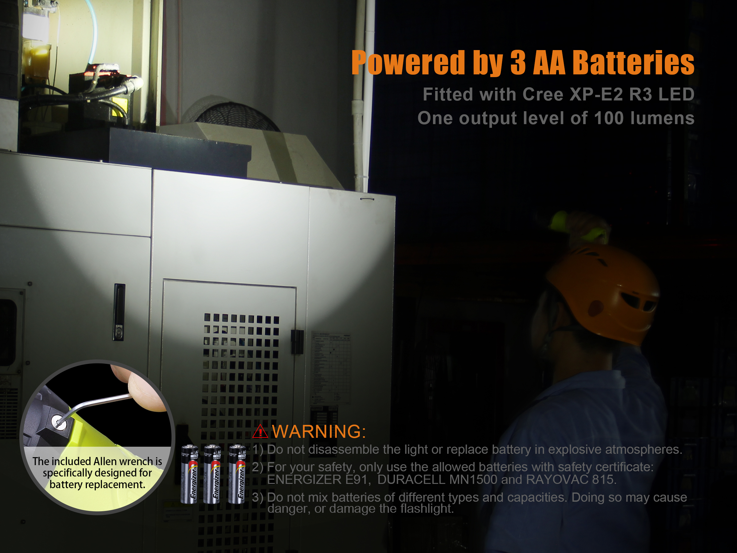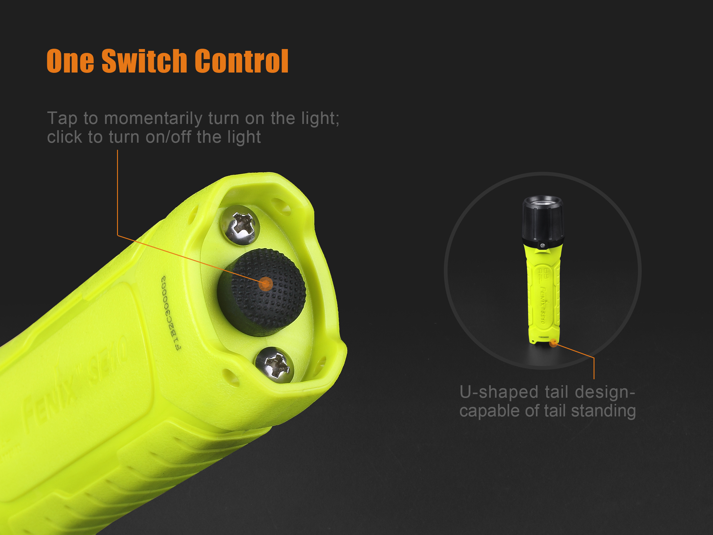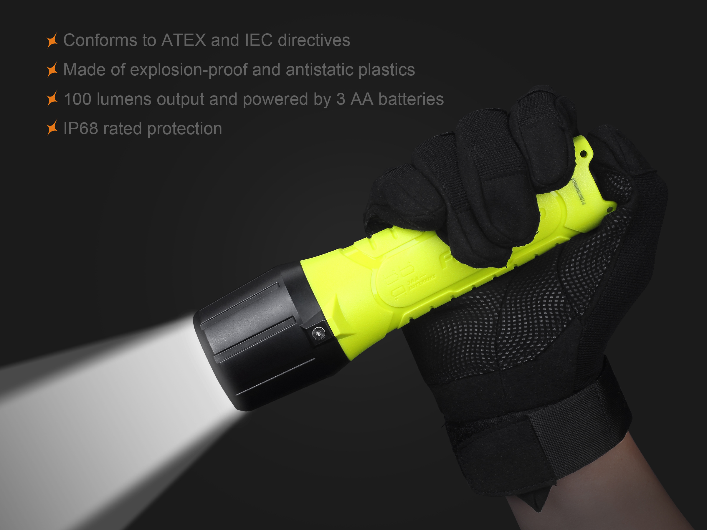 Profesionálne svietidlo Fenix SE10 s certifikáciou ATEX/IEC na použitie vo výbušnom prostredí. Svietidlo je napájané tromi tužkovými (AA) batériami a poskytuje svetelný tok až 100 lúmenov. Telo svietidla je vyrobené z antistatického plastu pre vysokú odolnosť a nárazuvzdornosť. Svietidlo je určené najmä pre hasičov, záchranárov, použitie v chemických prevádzkach a ďalších oblastiach, kde nemožno použiť bežné svetlá. Svietidlo nie je určená pre použitie v baniach.