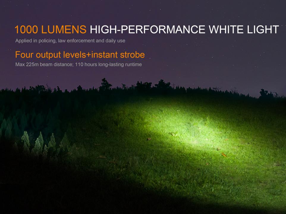 Fenix TK25 UV disponuje celkom piatimi režimami bieleho svetla s výdržou až 110 hodín a jedným režimom ultrafialového svetla.