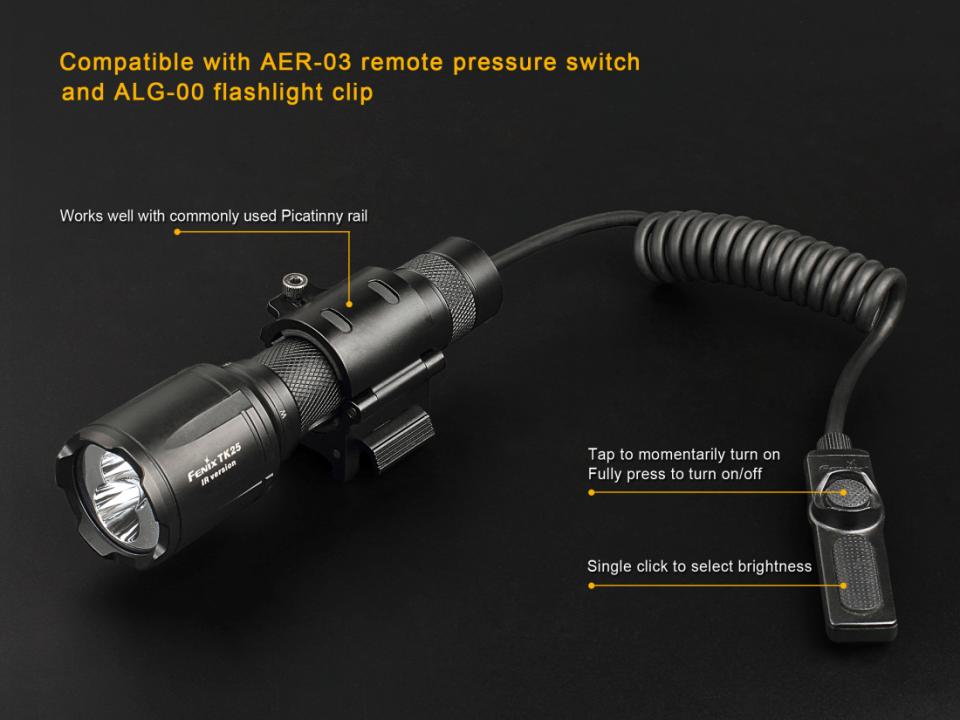 Fenix ​​TK25 IR disponuje celkom piatimi režimami bieleho svetla a dvoma režimami infračerveného svetla. Súčasťou balenia je i otočné puzdro, ktoré je navrhnuté pre jednoduché a rýchle odopnutie svietidla.