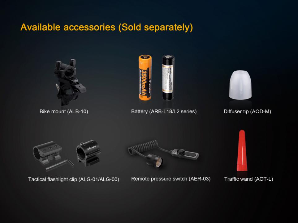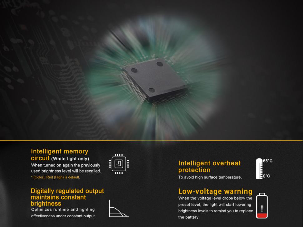 - Napájanie 2x CR123A, alebo 1x 18650 nabíjacie li-ion batérie.