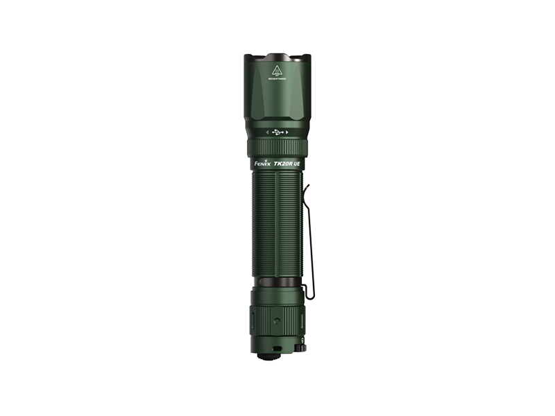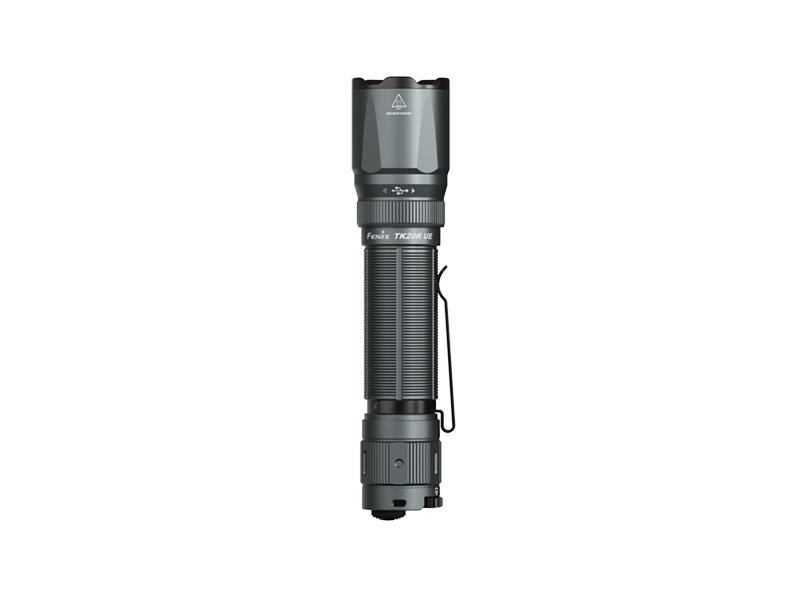 Taktické nabíjateľné svietidlo Fenix TK20R UE ponúka svetelný tok až 2800 lúmenov (ANSI). Je osadené špičkovou LED Luminus SFT-70, ktorá v kombinácii s hladkým reflektorom vytvára dobre zaostrený svetelný kužeľ s mimoriadnym dosvitom 465 metrov. Súčasťou balenia je Li-ion akumulátor 21700 s kapacitou 5000 mAh, ktorý sa nabíja cez USB-C konektor priamo vo svietidle. Nabíjacia zdierka je krytá skrutkovacou maticou, takže je dokonale chránená proti vode a nečistotám. Na koncovke svietidla je taktický spínač a otočný volič FlexiSensa control, ktorým je možné svietidlo zamknúť či zvoliť jeden z dvoch módov použitia. V taktickom móde je možné svietidlo zapnúť do režimu 2800 lúmenov, alebo do stroboskopu s premenlivou frekvenciou. V služobnom móde je možné voliť medzi štyrmi režimami svietenia s výdržou až 40 hodín. Toto taktické svietidlo je vďaka svojmu masívnemu prevedeniu pevné ako tank a pritom si zachováva kompaktnú veľkosť. Robustné prevedenie umožňuje použitie svietidla na dlhých zbraniach, takže je vhodné pre profesionálov, ozbrojené zložky a poľovníctvo.