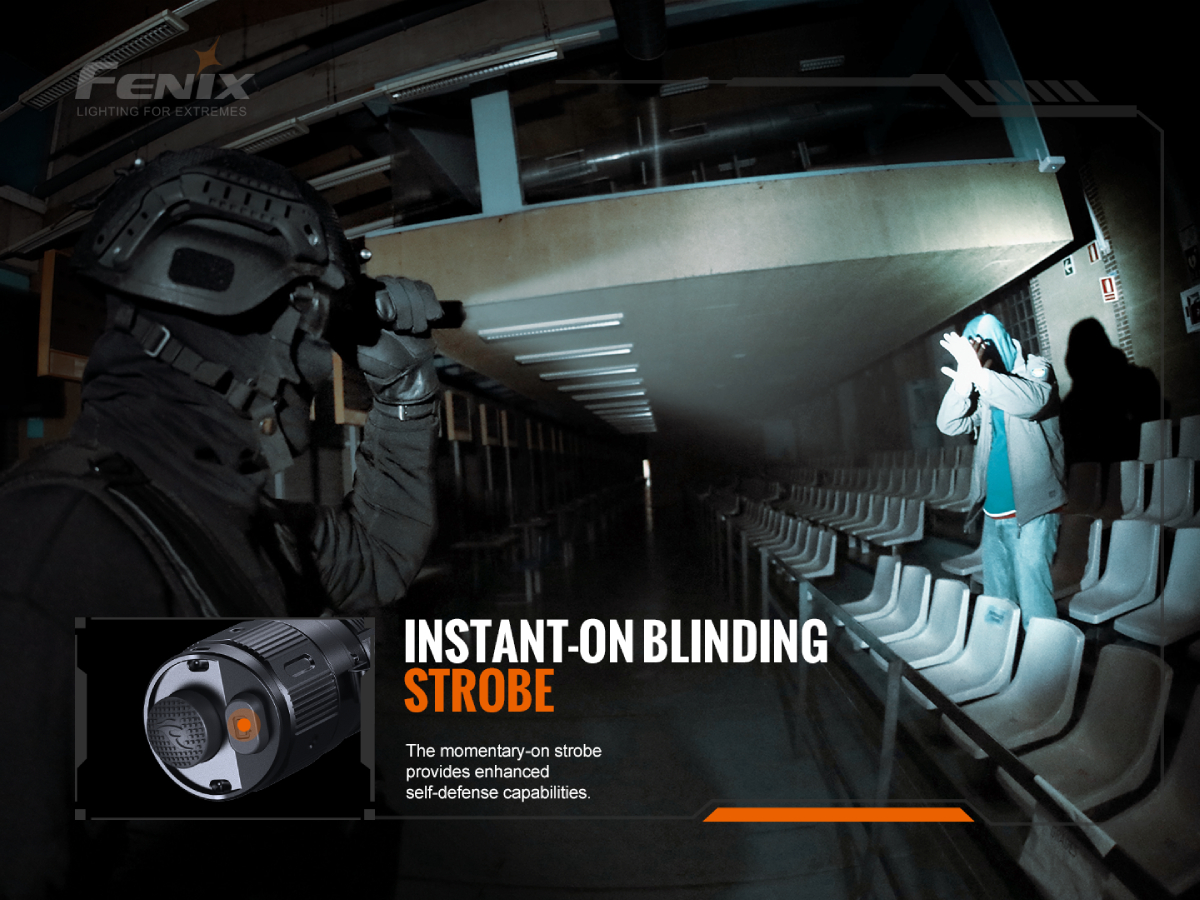 Taktické nabíjateľné svietidlo Fenix TK20R V2.0 ponúka svetelný tok až 3000 lúmenov (ANSI), nabíjanie cez moderný USB-C konektor a možnosť okamžitej aktivácie stroboskopu. Je osadené špičkovou LED Luminus SFT-70, ktorá v kombinácii s hladkým reflektorom vytvára dobre zaostrený svetelný kužeľ s mimoriadnym dosvitom 475 metrov. Súčasťou balenia je Li-ion akumulátor 21700 s kapacitou 5000 mAh, ktorý sa nabíja cez USB-C konektor priamo vo svietidle. Nabíjací otvor je krytý skrutkovacou maticou, takže je dokonale chránený proti vode a nečistotám. Svietidlo Fenix TK20R V2.0 používa duálny taktický spínač, ktorý umožňuje rýchlejšie a spoľahlivejšie ovládanie v krízových situáciách. Možno ju napríklad rýchlo zapnúť priamo do stroboskopického režimu. Svietidlo disponuje celkom šiestimi režimami svietenia s výdržou až 48 hodín. Toto taktické svietidlo je vďaka svojmu masívnemu prevedeniu pevné a odolné a pritom si zachováva kompaktnú veľkosť. Robustné prevedenie umožňuje použitie svietidla na dlhých zbraniach, takže je vhodné pre profesionálov, ozbrojené zložky aj poľovníctvo.
