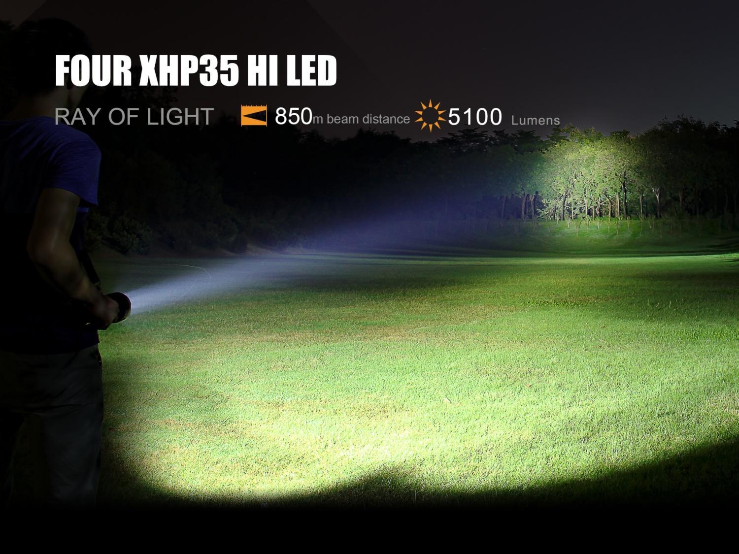 - Používa štyri najnovšie špičkové LED Cree XHP35 HI