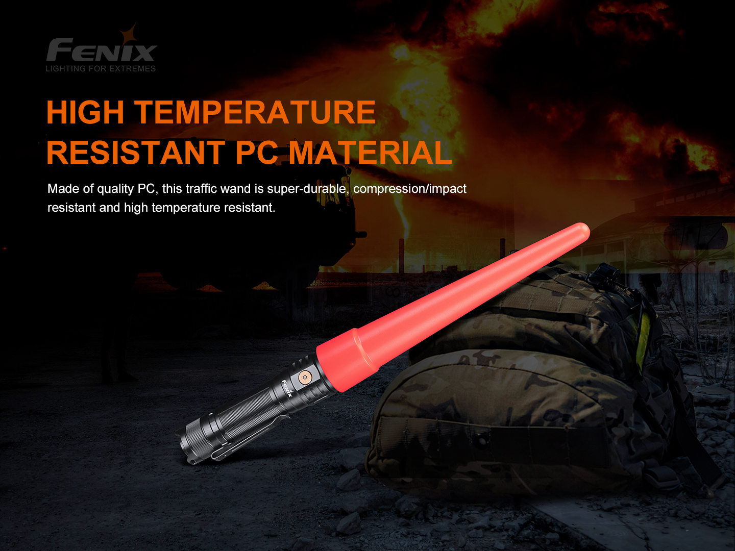 Červený signálny kužeľ Fenix AOT-S+ pre svietidlá s priemerom reflektora 25,4-26,5 mm. Je vhodný napríklad pre modely Fenix E28R, E30R, E35 V3.0, LD30, PD32 V2.0, PD35 V3.0, PD36R, PD36 TAC, UC30, UC35. Rozptyľuje pôvodne veľmi úzky svetelný lúč reflektora svietidla do všetkých strán. Svietidlo s výstražným dopravným kužeľom tak možno využiť napríklad na riadenie pozemnej i leteckej dopravy. Ide o vhodný doplnok pre políciu, hasičov, záchranárov a letiskový personál.